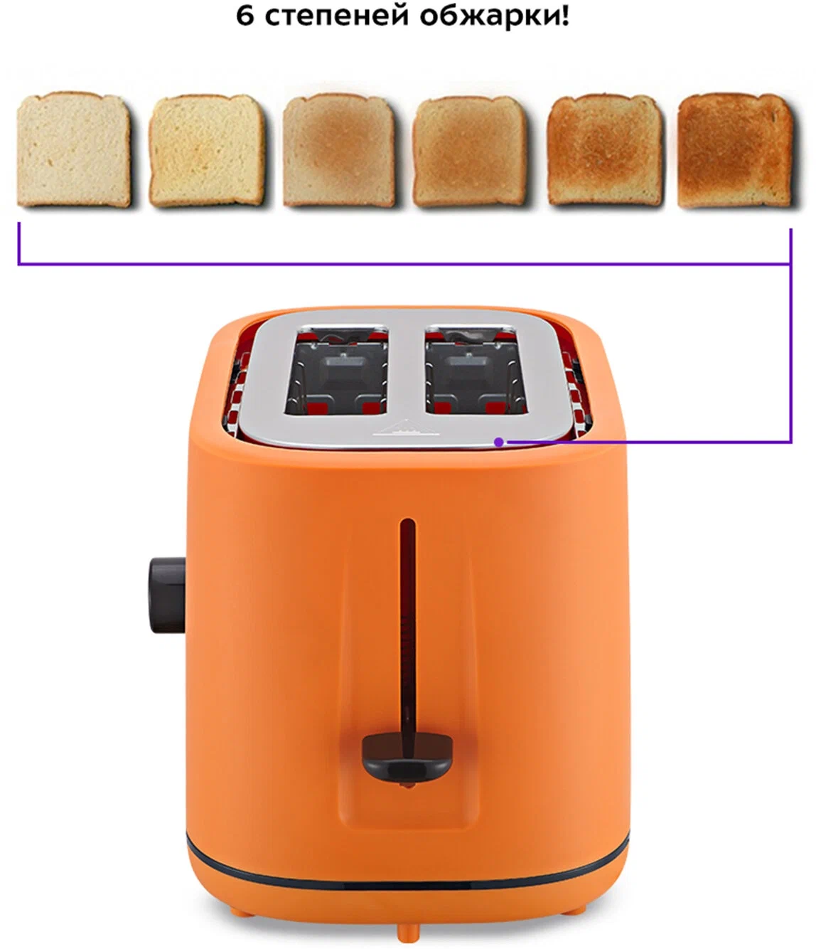 Дополнительные функции: регулировка степени обжаривания, кнопка отмены, автоматическое центрирование тостов, автоматическое поднятие тостов
