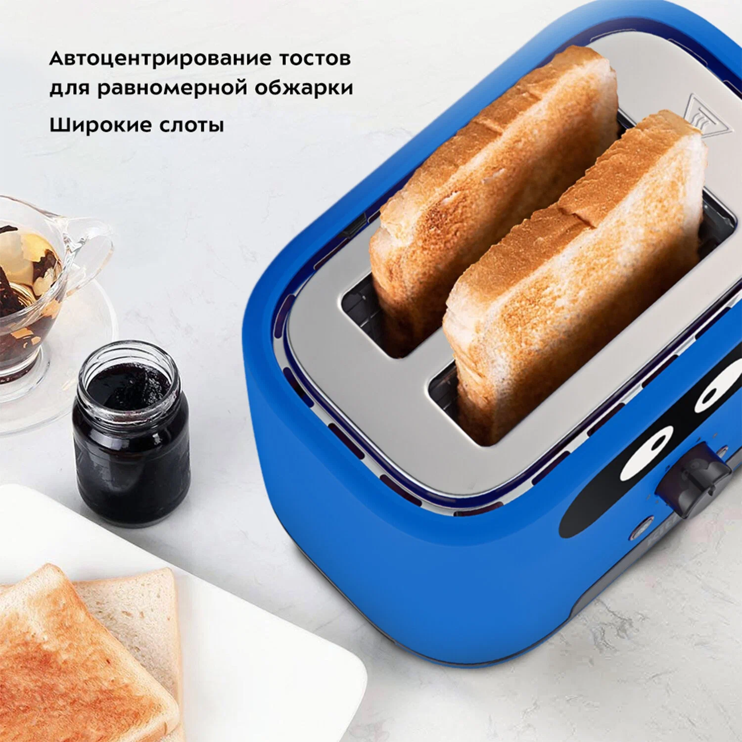 Дополнительные функции: регулировка степени обжаривания, кнопка отмены, автоматическое центрирование тостов, автоматическое поднятие тостов