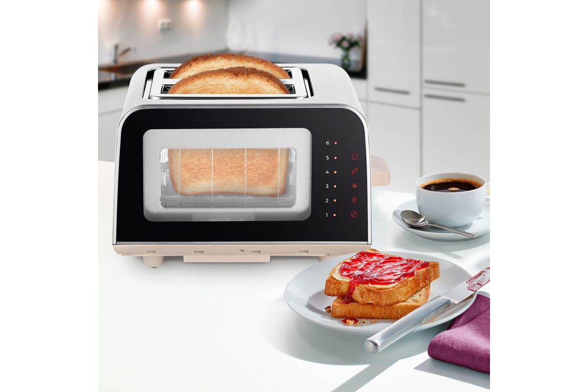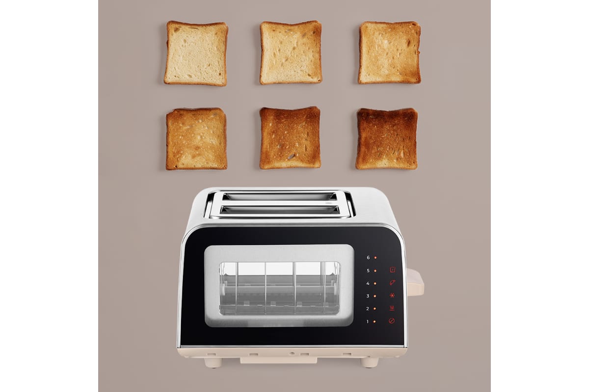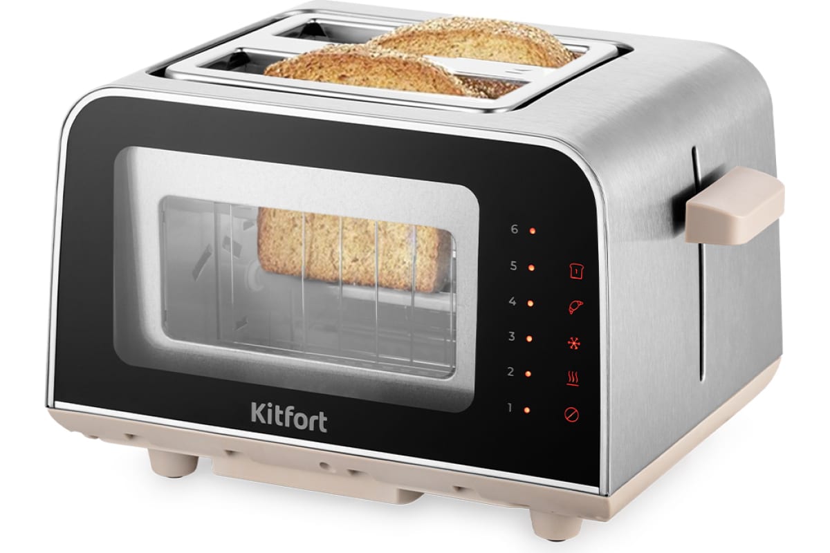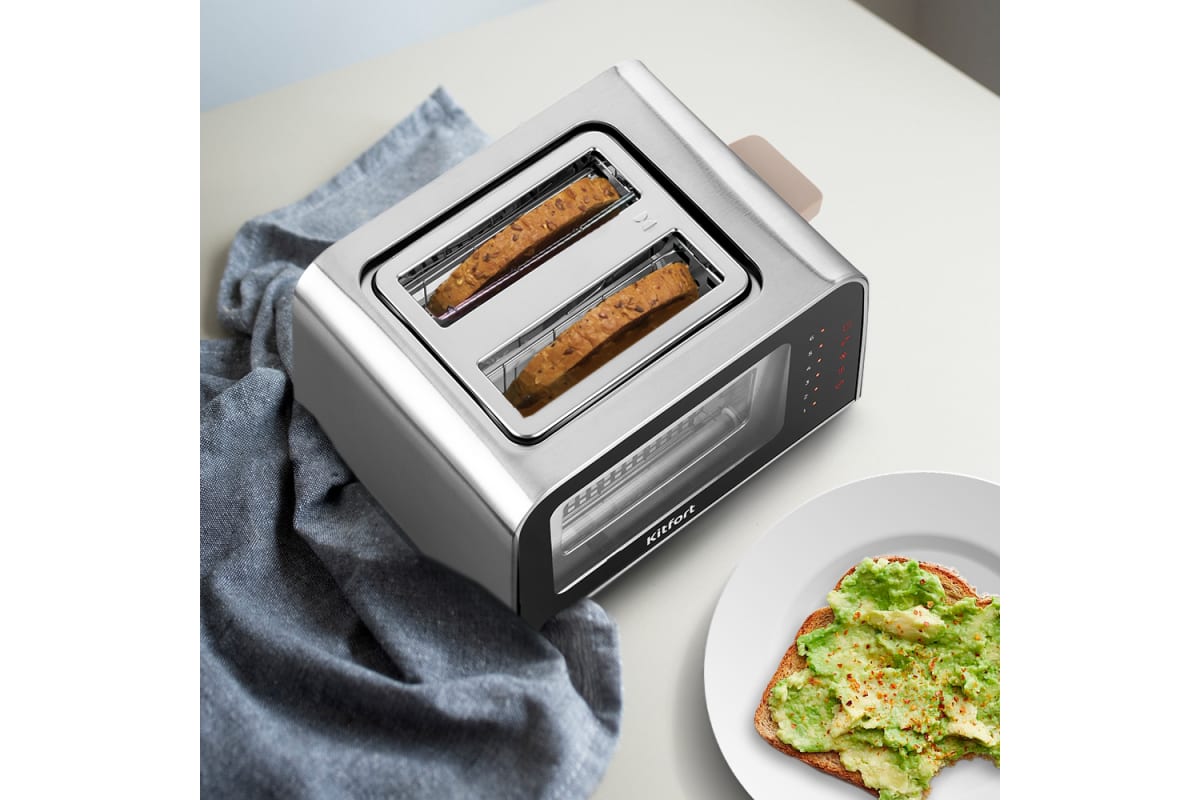Электрический тостер Kitfort КТ-6060 создан для тех, кто любит полакомиться ароматным и хрустящим горячим поджаренным хлебом. Особый вкус и цвет корочки тостов получаются такими благодаря карамелизации сахара, содержащегося в муке, при инфракрасном нагреве в процессе приготовления. Благодаря стеклянным стенкам с двух сторон тостера вы можете наблюдать за процессом приготовления. Тостер оснащен сенсорной панелью управления и может работать в нескольких режимах. Режим «Подогрев» служит для подогрева уже готовых тостов, если они остыли. Режим «Разморозка» позволяет приготовить тосты из замороженного хлеба. Режим «Бейгл» позволяет поджарить внутреннюю часть разрезанного пополам мучного изделия, в то же время внешняя поверхность не пригорит. Загруженные тосты автоматически центрируются, чтобы их обжарка с двух сторон была равномерной независимо от толщины куска. По окончании приготовления тостер автоматически отключается, а тосты поднимаются вверх, чтобы их было удобнее извлечь. Механизм экстра-подъема позволяет приподнять выше тосты небольшого размера для их удобного извлечения. Вы можете приготовить 1 или 2 тоста одновременно. Съемный поддон для крошек позволяет легко и удобно очистить тостер от хлебных крошек. Тостер предназначен для приготовления тостов в домашних условиях и может применяться в квартирах, загородных домах, клиентами в гостиничных номерах, бытовых помещениях магазинов, офисов и т.п. для некоммерческой эксплуатации.