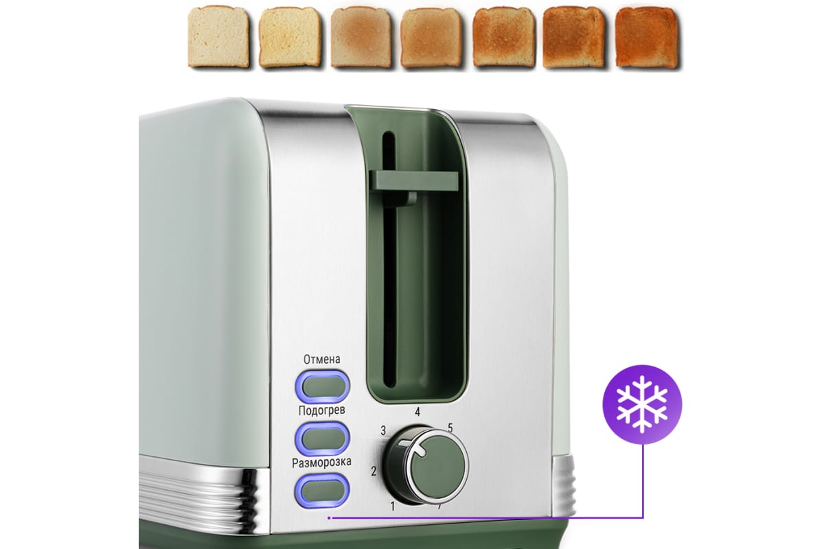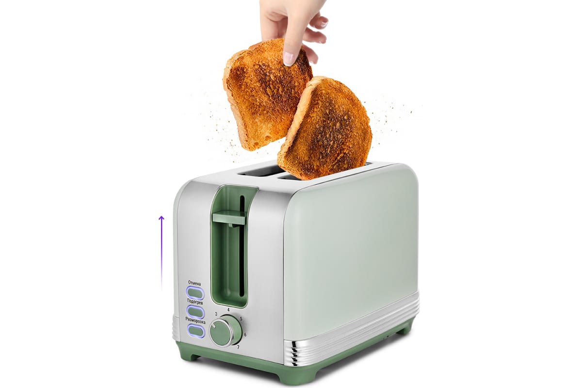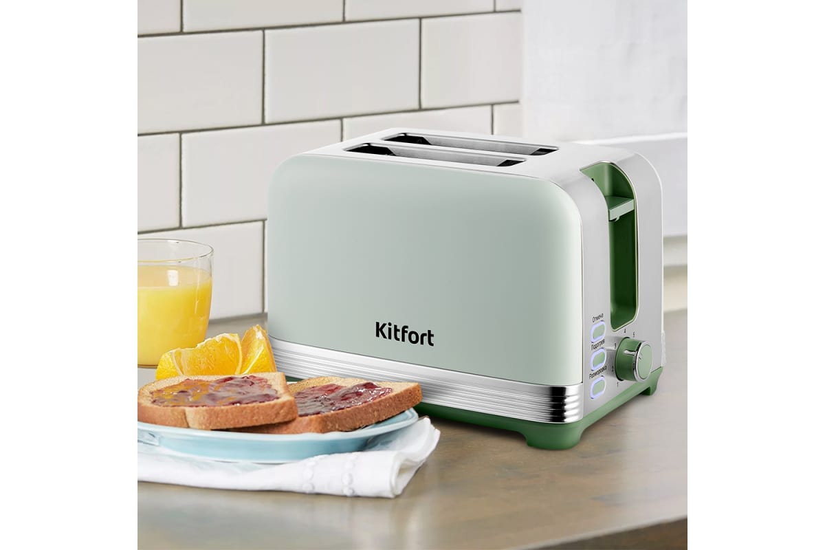 Тостер Kitfort КТ-6070 создан для тех, кто любит полакомиться ароматным и хрустящим горячим поджаренным хлебом. Особый вкус и цвет корочки тостов получаются такими благодаря карамелизации сахара, содержащегося в муке, при инфракрасном нагреве в процессе приготовления. Тостер оснащен поворотным регулятором степени обжаривания и тремя кнопками. Режим подогрева служит для подогрева уже готовых тостов, если они остыли. Режим разморозки позволяет приготовить тосты из замороженного хлеба. Загруженные тосты автоматически центрируются, чтобы их обжарка с двух сторон была равномерной независимо от толщины куска. Благодаря широким слотам можно поджаривать толстые куски хлеба, а не только тонкие. По окончании приготовления тостер автоматически отключается, а тосты поднимаются вверх, чтобы их было удобнее извлечь. Механизм экстра-подъема позволяет приподнять тосты выше для удобного извлечения тостов небольшого размера. Вы можете приготовить 1 или 2 тоста одновременно. Снизу расположен выдвижной поддон для крошек, поэтому чистить тостер просто и удобно. Тостер предназначен для приготовления тостов в домашних условиях и может применяться в квартирах, загородных домах, клиентами в гостиничных номерах, бытовых помещениях магазинов, офисов и т.п. для некоммерческой эксплуатации.