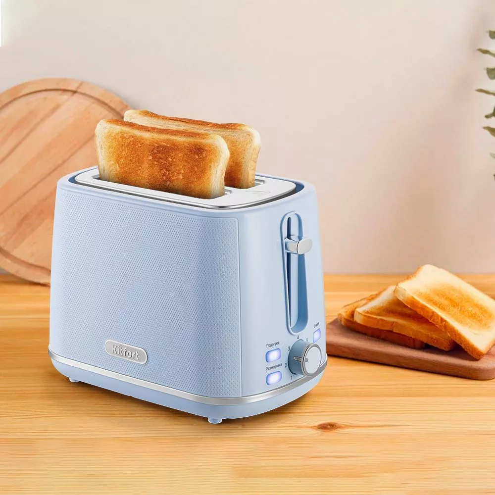 Тостер Kitfort КТ-6073 порадует вас не только приготовленными тостами, но и своим красивым дизайном – тостер выполнен в нежно-голубом цвете, он идеально впишется в интерьер вашей кухни. Вы можете приготовить сразу 1 или 2 тоста одновременно.