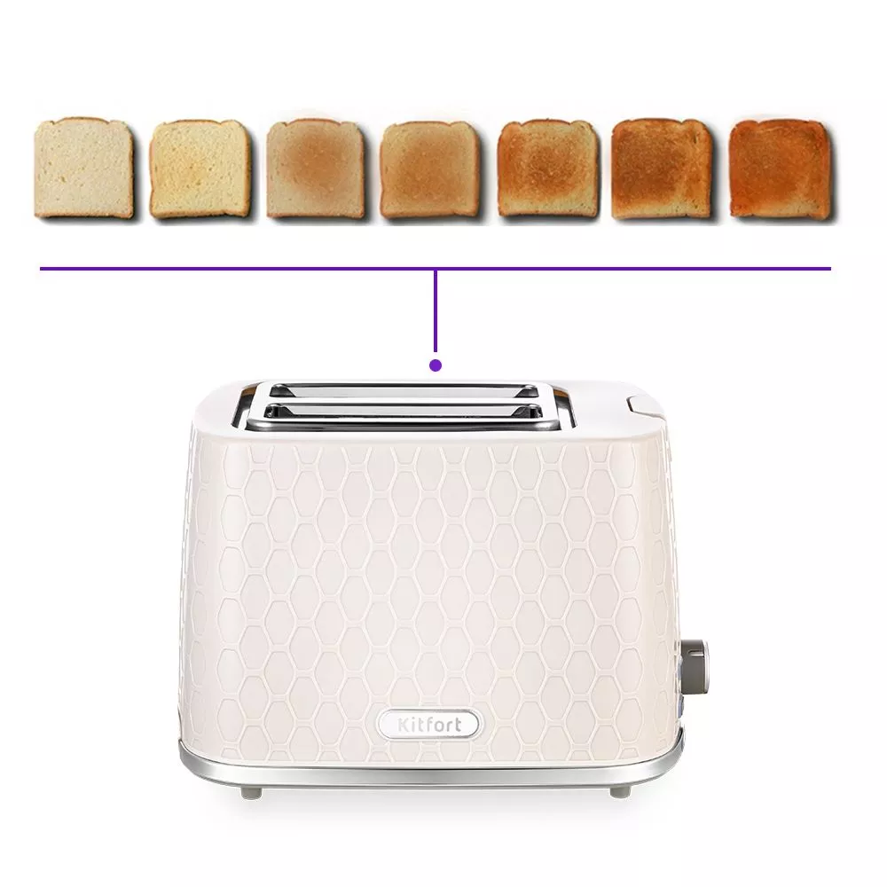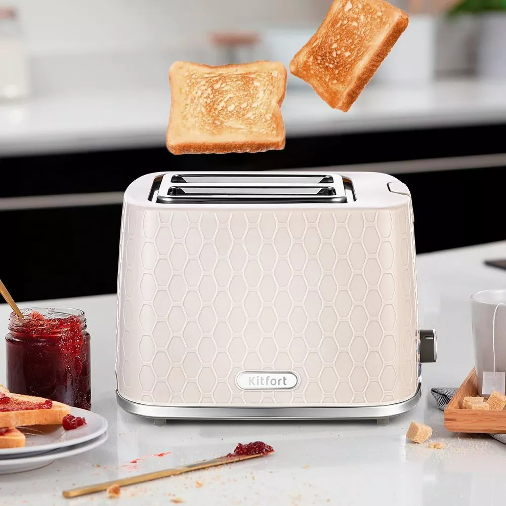 Тостер Kitfort КТ-6075 порадует вас не только приготовленными хрустящими тостами, но и своим красивым дизайном! Тостер выполнен в бежевом цвете, а на его корпусе сделан узор в виде пчелиных сот. Вы можете приготовить сразу 1 или 2 тоста одновременно.