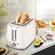 Загруженные тосты автоматически центрируются, чтобы их поджарка с двух сторон была равномерной независимо от толщины куска. После приготовления, устройство отключается, а тосты поднимаются вверх, чтобы их было удобнее извлекать, без риска обжечься.
