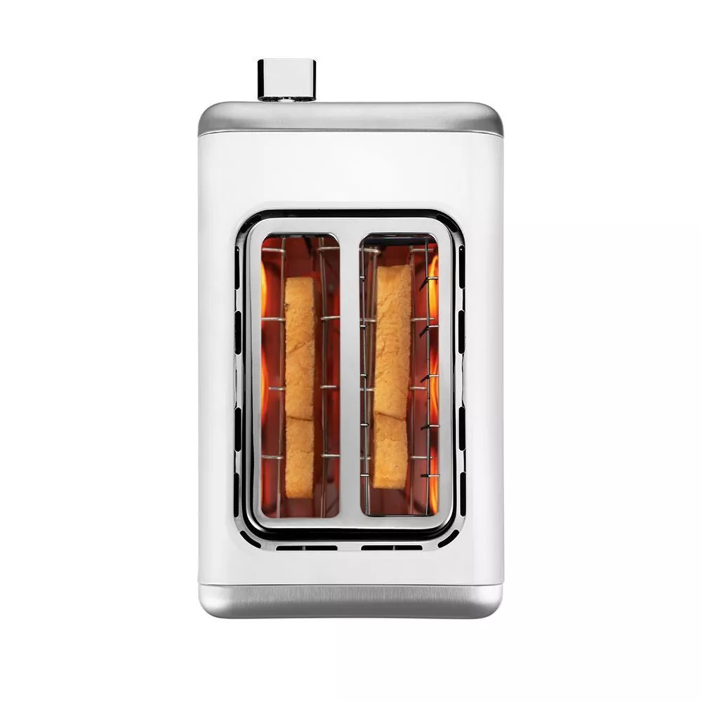 Загруженные тосты автоматически центрируются, чтобы их обжарка с двух сторон была равномерной независимо от толщины куска. По окончании приготовления тостер отключается, а тосты поднимаются наверх, чтобы их было удобнее извлечь.