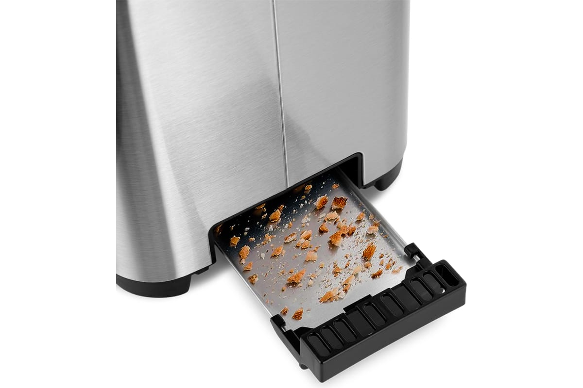 Снизу расположен съемный поддон для крошек, поэтому чистить тостер просто и удобно.