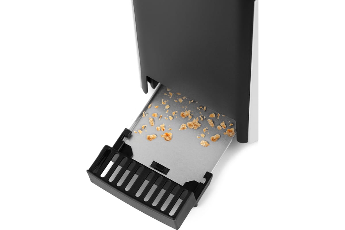 Снизу расположен съемный поддон для крошек, поэтому чистить тостер просто и удобно.