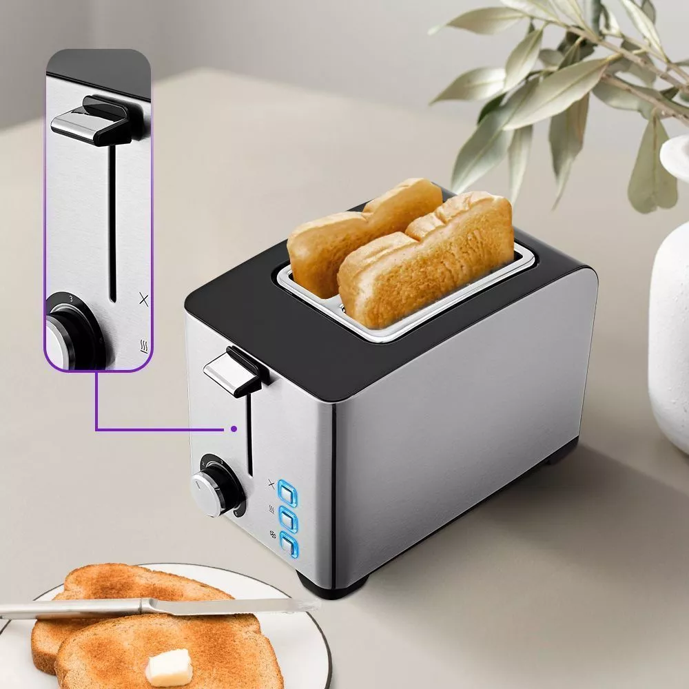 Благодаря широким слотам поджаривать хлеб можно любого размера! Максимальная мощность 850 Вт обеспечивает быстрое приготовление тостов, а функция «центрирования» позволяет обжаривать тосты равномерно. Можно приготовить один или два тоста одновременно.