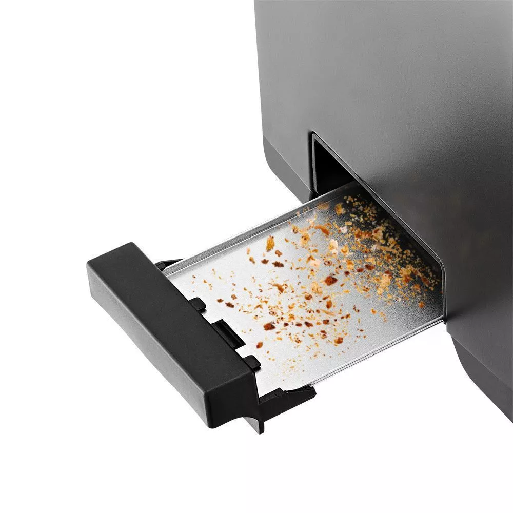 Съёмный поддон с лёгкостью очистит тостер от хлебных крошек. Чтобы извлечь поддон, его нужно просто потянуть на себя. Вытряхнуть все хлебные крошки и, если это необходимо, помыть в тёплой воде. Затем поддон нужно просушить и вставить обратно.