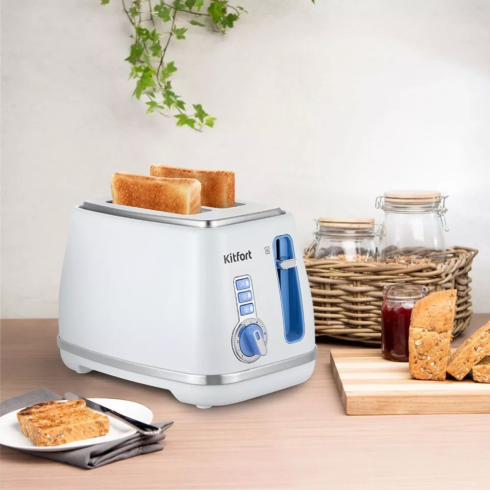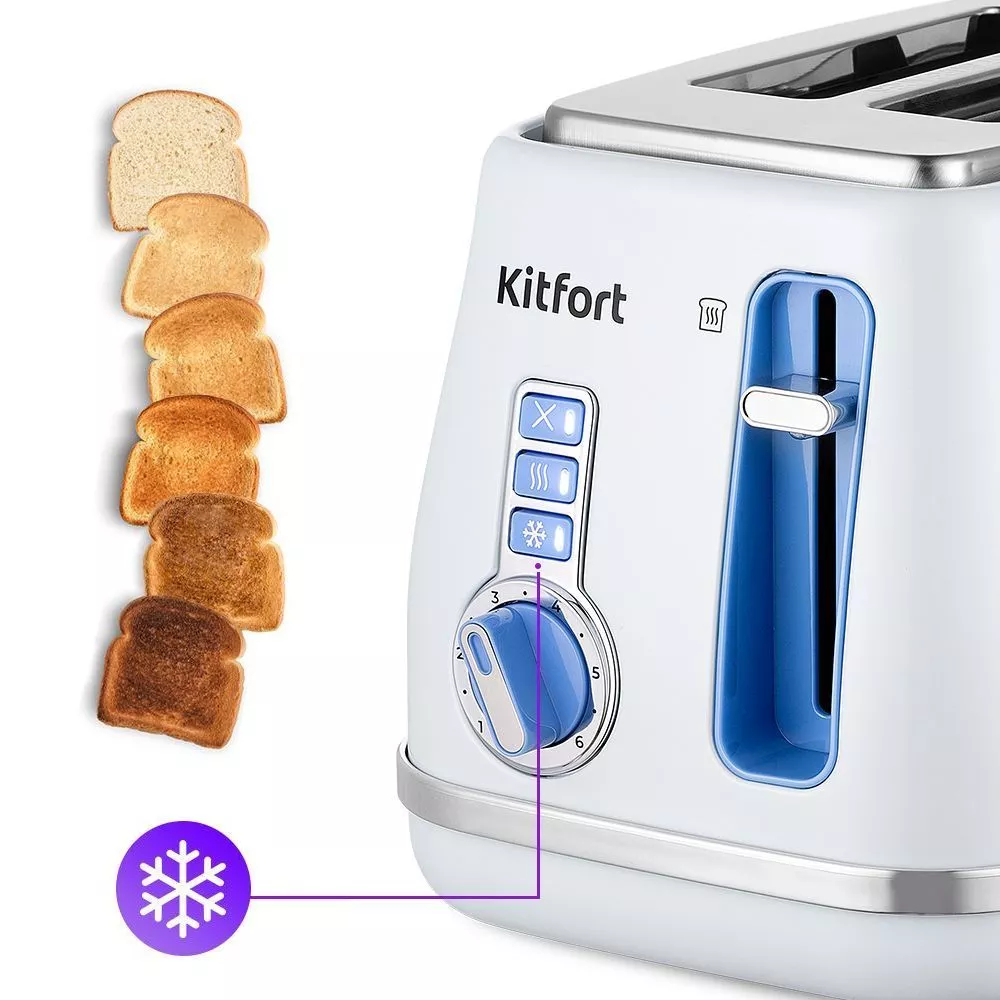 Тостер Kitfort КТ-6213 создан для тех, кто любит полакомиться ароматным и хрустящим хлебом. Особый вкус и цвет корочки тостов получаются такими благодаря карамелизации сахара, содержащегося в муке, при инфракрасном нагреве в процессе приготовления.