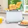 Загруженные тосты автоматически центрируются, чтобы их обжарка с 2 сторон была равномерной. Благодаря широким слотам можно обжаривать толстые куски хлеба, половинки круассанов, бейглов.