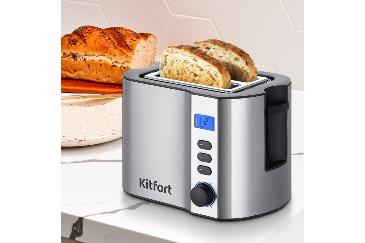 Электрический тостер Kitfort КТ-6251 создан для тех, кто любит полакомиться ароматным и хрустящим горячим поджаренным хлебом. Особый вкус и цвет корочки тостов получаются такими благодаря карамелизации сахара, содержащегося в муке, при инфракрасном нагреве в процессе приготовления.