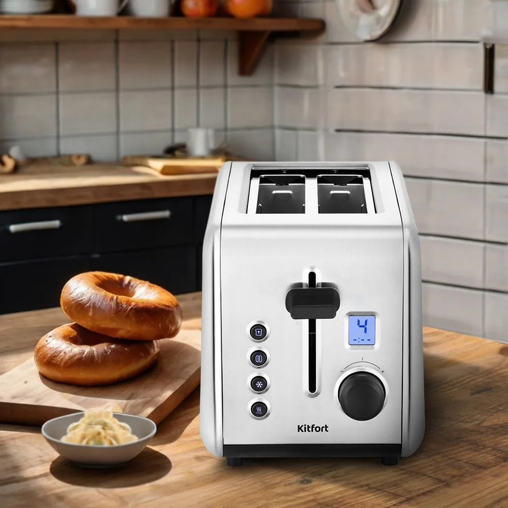 Электрический тостер Kitfort КТ-6412 создан для тех, кто любит полакомиться ароматным и хрустящим поджаренным хлебом. Особый вкус и цвет корочки тостов получается благодаря карамелизации сахара, содержащегося в муке.