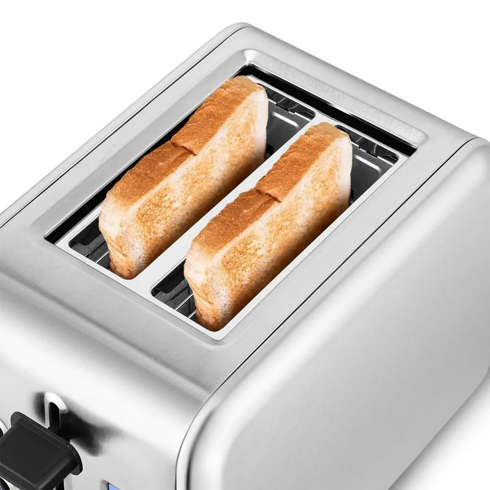Загруженные тосты автоматически центрируются, чтобы их обжарка с двух сторон была равномерной независимо от толщины куска. По окончании приготовления тостер отключается, а тосты поднимаются наверх, чтобы их было удобнее извлечь.