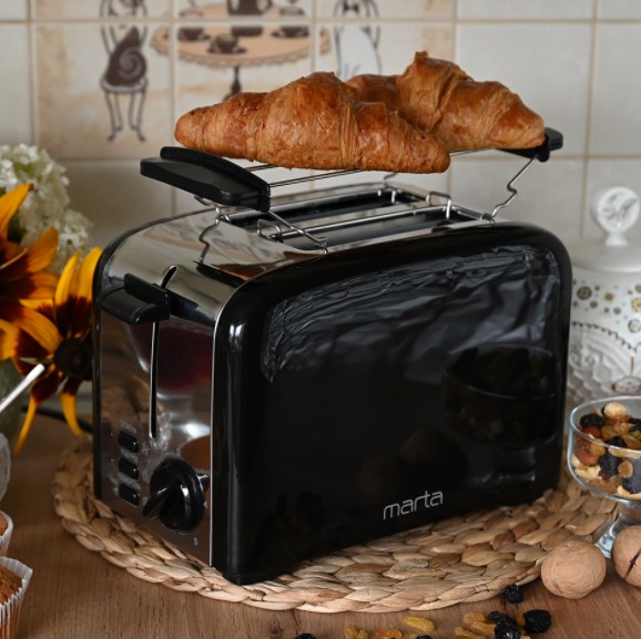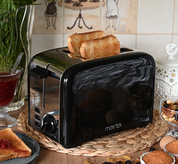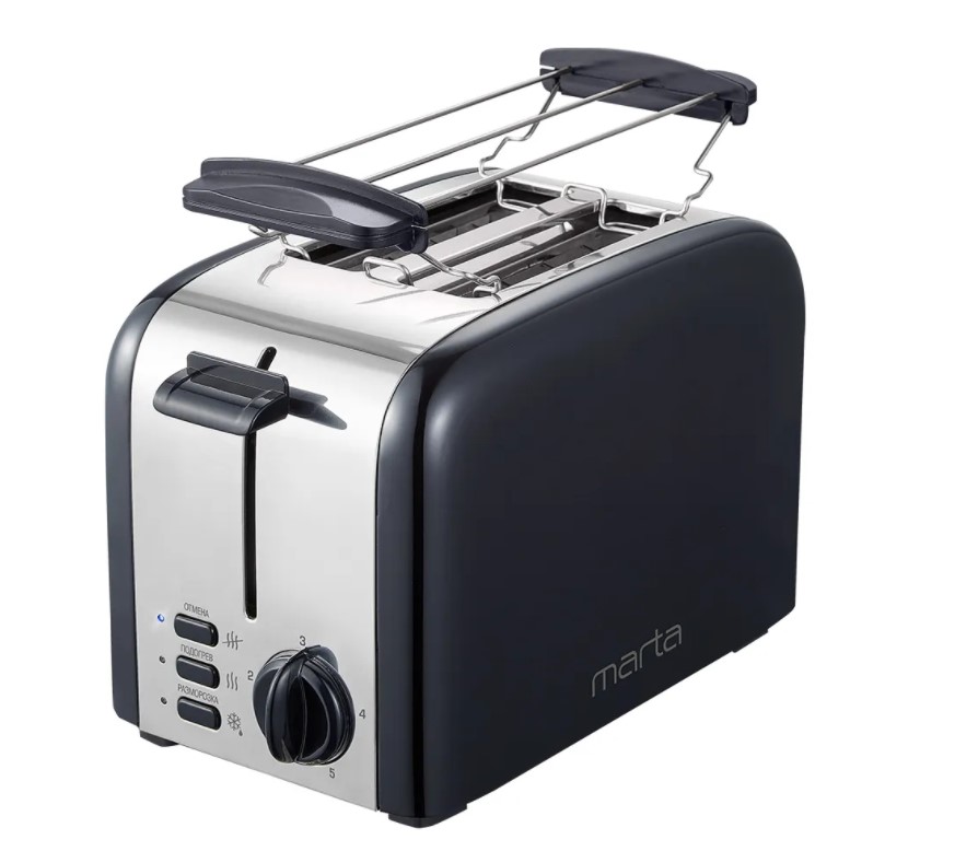 Тостер в корпусе из термостойкого пластика с 5 режимами работы, решеткой для разогрева булочек, плавной регулировкой мощности, функциями разогрева, размораживания и отмены. 5 режимов обжаривания позволят получить хрустящие равномерно обжаренные тосты из любых сортов хлеба - от светлого пшеничного до темного ржаного. В комплекте тостера есть решетка для разогрева булочек, круассанов и другой выпечки. С помощью функции разогрева можно разогревать ранее приготовленные ломтики. Функция разморозки позволит приготовить хлеб, лепешки, либо оладьи, которые хранились в морозилке. Работу прибора можно прекратить в любой момент нажатием кнопки отмены. Тостер оснащен двумя отсеками для одновременного обжаривания двух кусочков хлеба, а съемный поддон для крошек существенно упрощает его очистку.