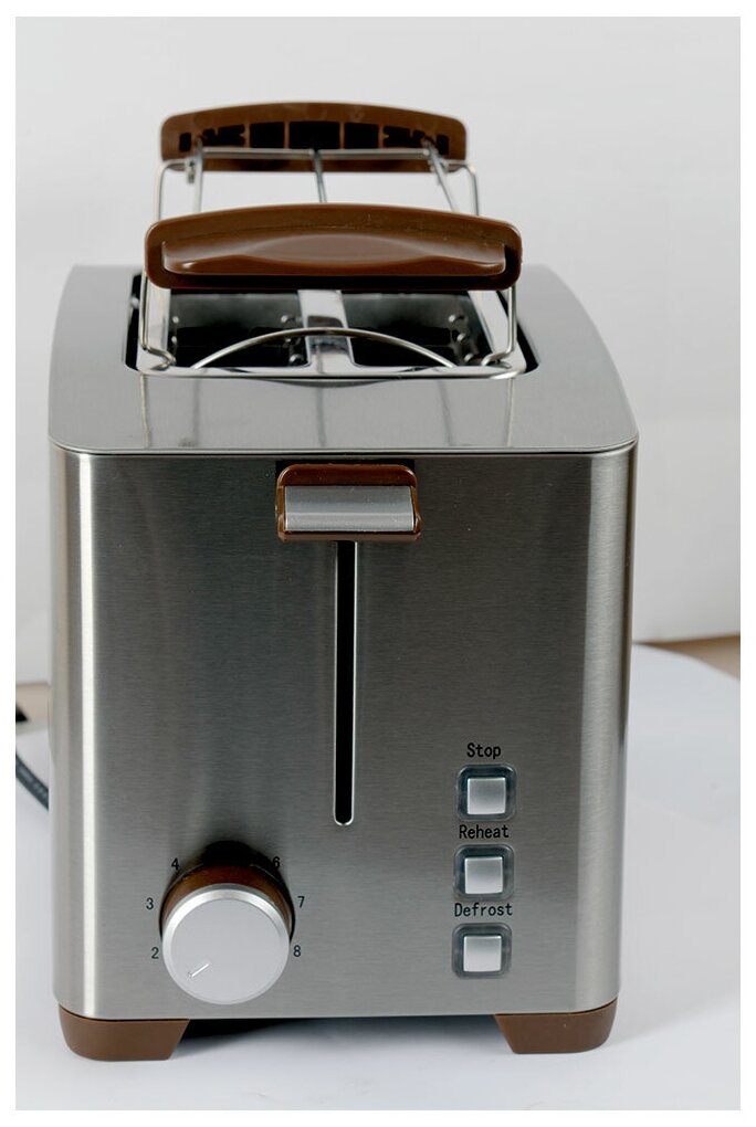 9 степеней обжаривания, поддон для крошек, подогрев булочек; подсветка элементов управления