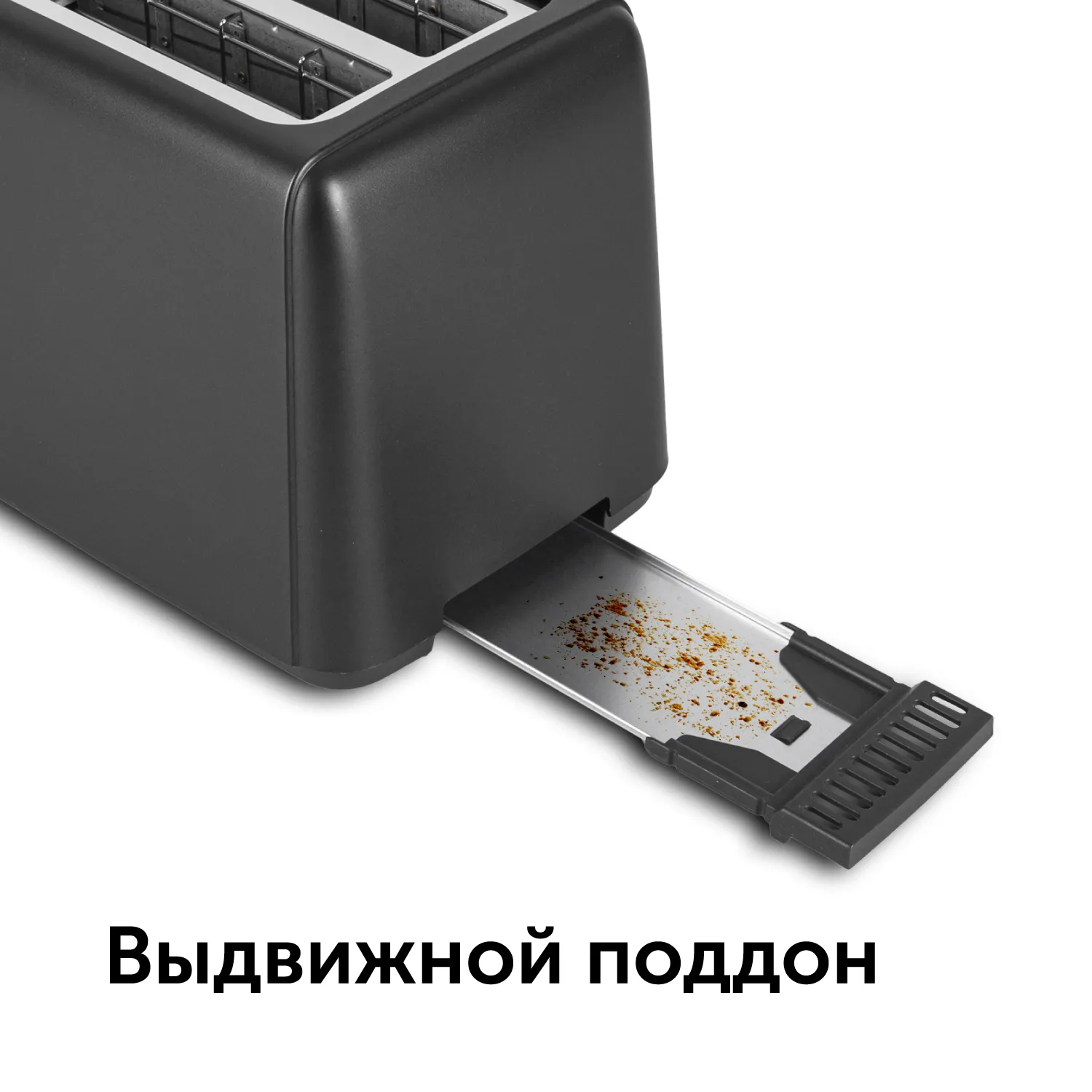 Ваш идеальный завтрак с тостером RT-44. 7 степеней обжарки позволят вам приготовить хлеб именно так, как любите вы – слегка подсушенный или с хрустящей корочкой. Автоматическое центрирование тостов, функция разморозки и выдвижной поддон для крошек отвечают за максимальное удобство использования.