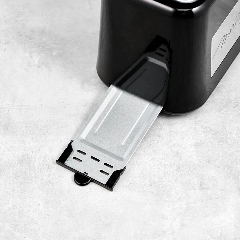 Процесс очистки прибора упрощает выдвижной поддон для крошек, он помогает рабочему столу оставаться чистым.