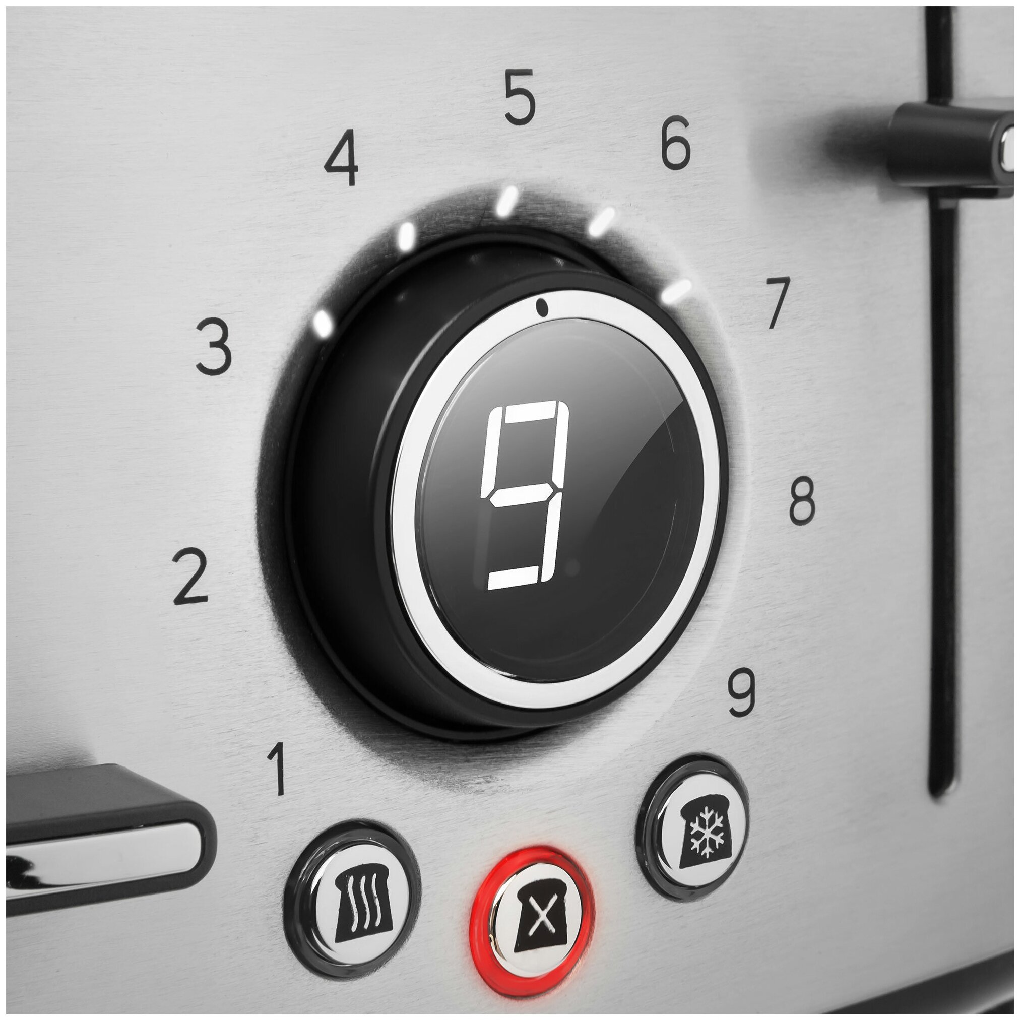 автоматическое центрирование тостов, кнопка отмены, плавная регулировка температуры, регулировка степени обжаривания