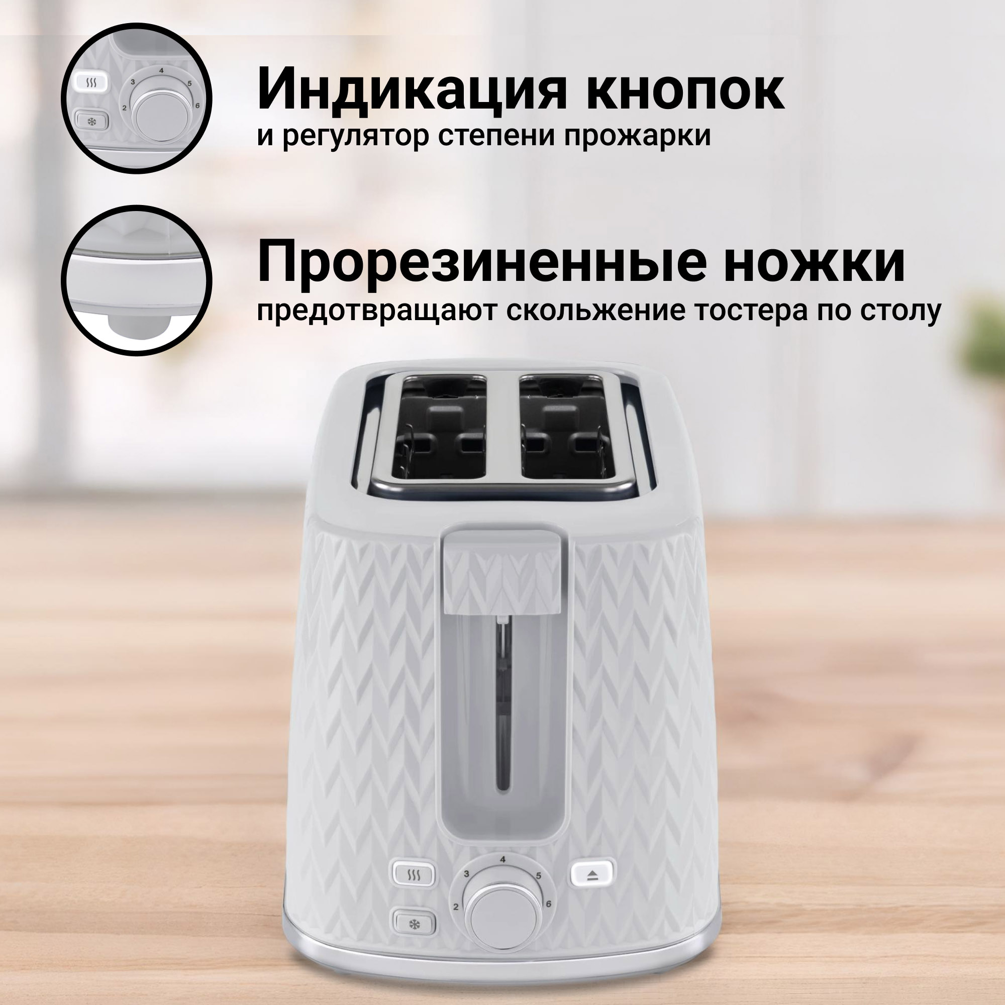 Хрустящие гренки с чесноком для большой компании, или ароматные тосты к завтраку — это просто и быстро! Тостер Tesler TT-204 оснащен двумя отсеками для хлеба, поэтому процесс приготовления не займет много времени. Элегантный корпус с геометрическим узором дополнен хромированными акцентами, благодаря чему тостер выигрышно смотрится на любой столешнице.