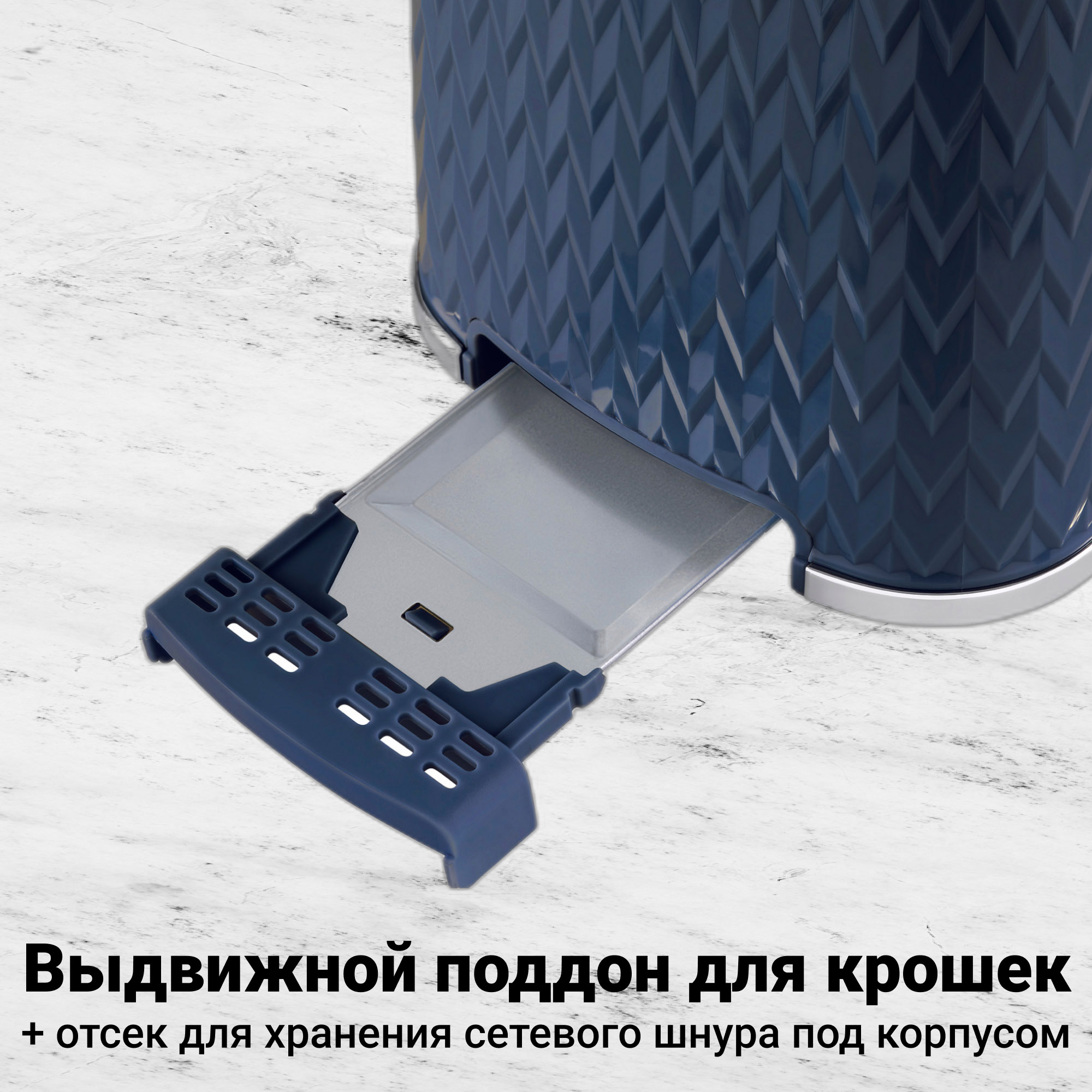 В боковой части тостера есть поддон для крошек, который можно полностью снять, вытряхнув крошки в мусорное ведро.