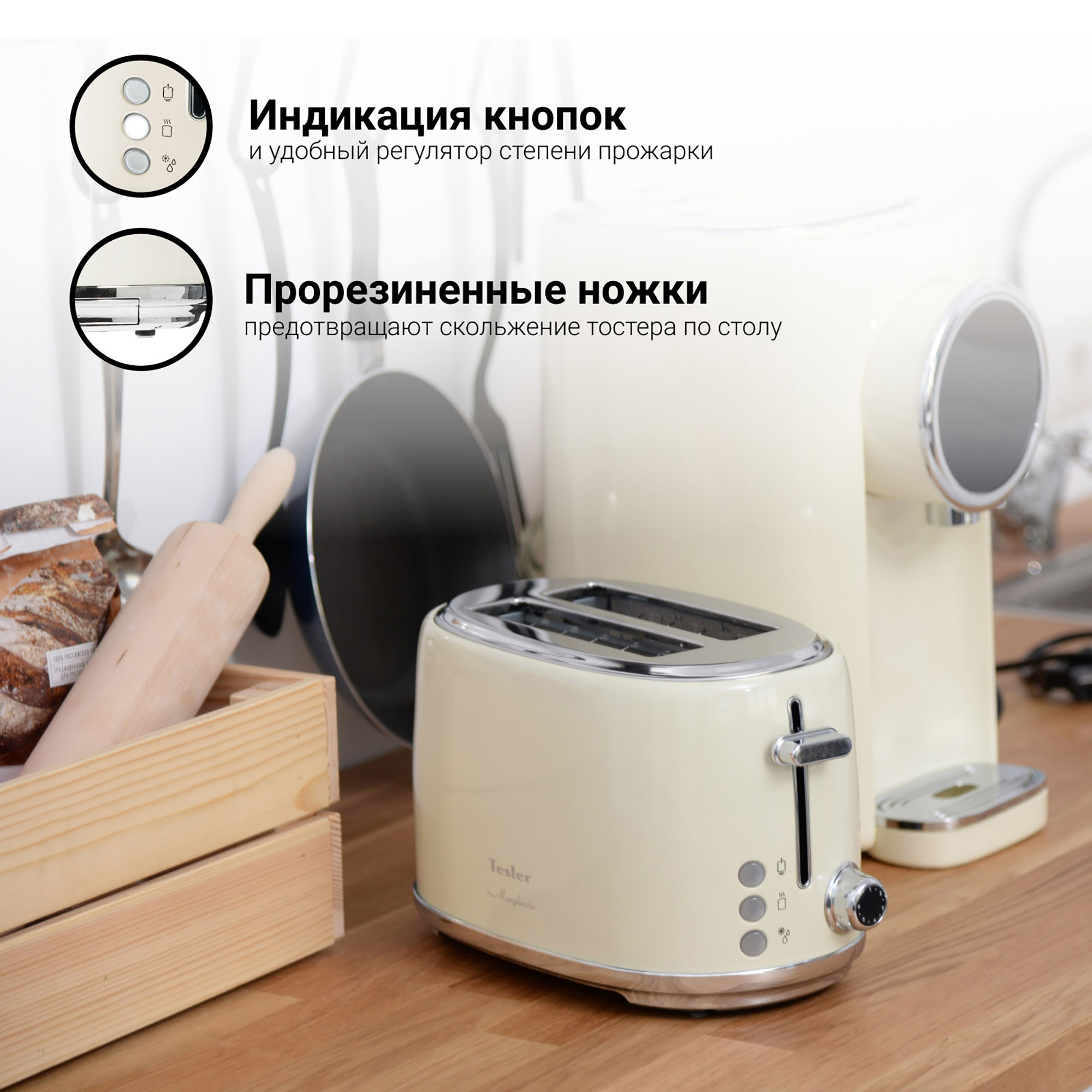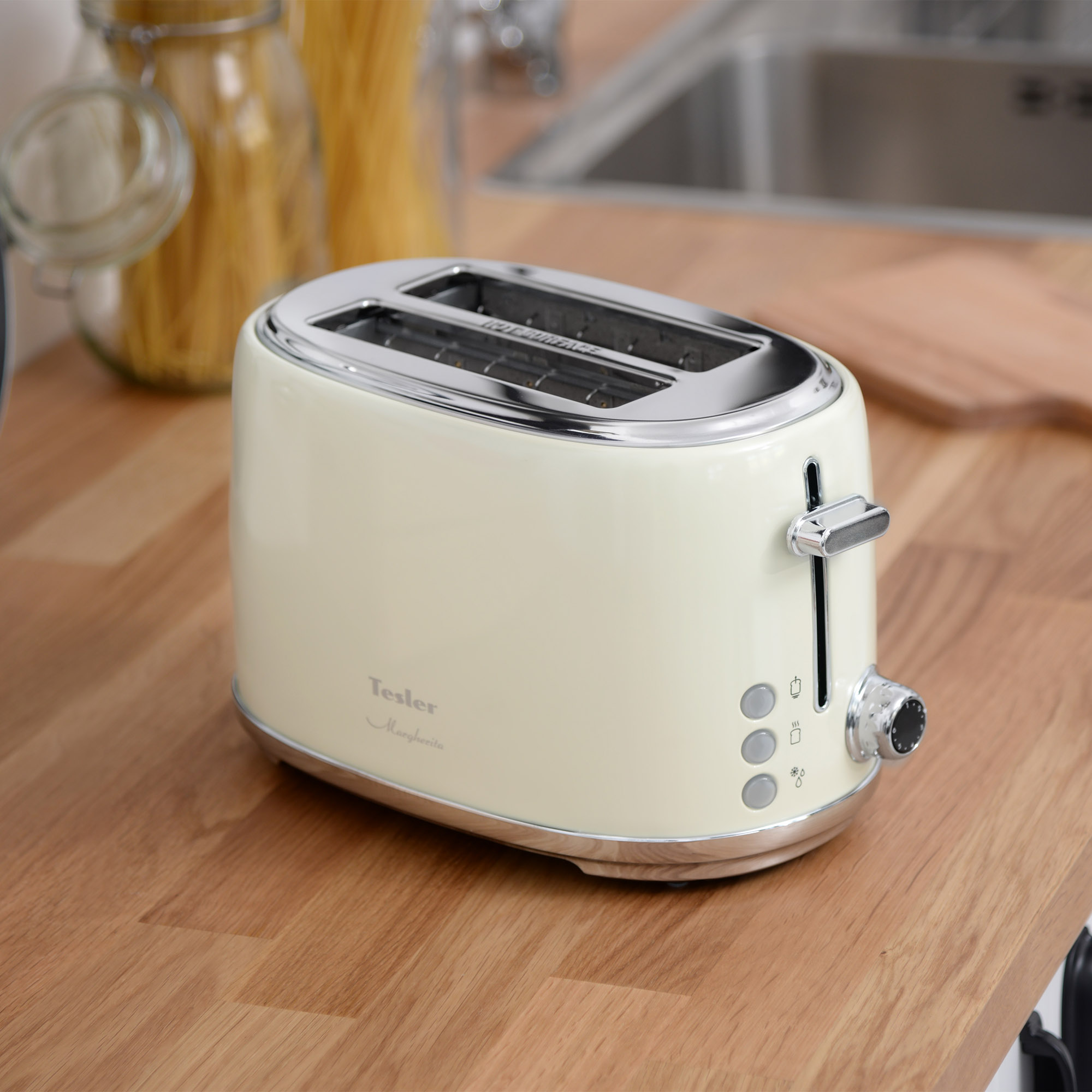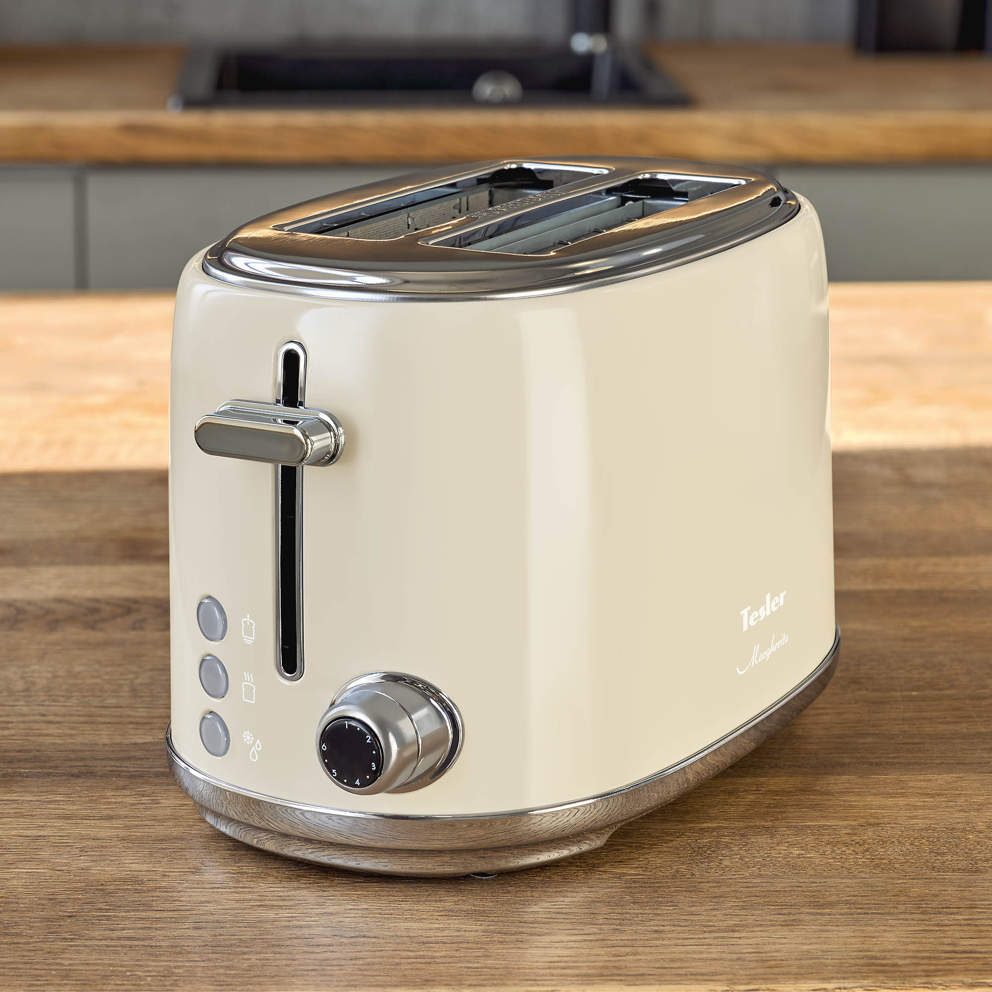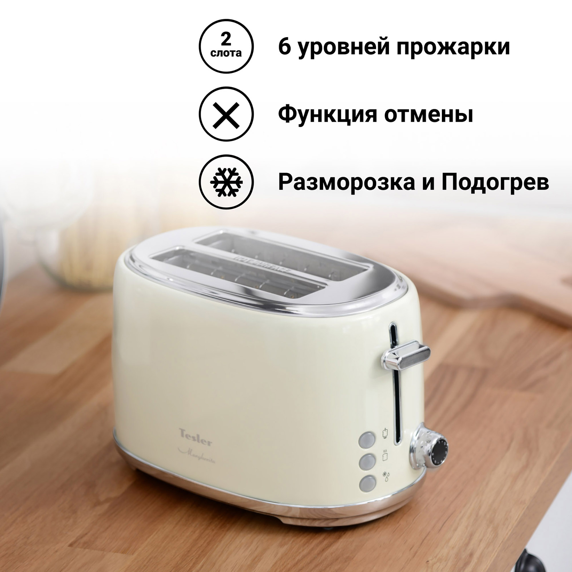 Любите побаловать себя вкусным и полезным завтраком? Тогда обратите внимание на тостер TESLER TT-255 из линейки кухонных приборов Margherita. Он оснащен двумя отсеками для хлеба, поэтому процесс приготовления не займет много времени. А автоматическое центрирование хлеба обеспечит его равномерную прожарку.