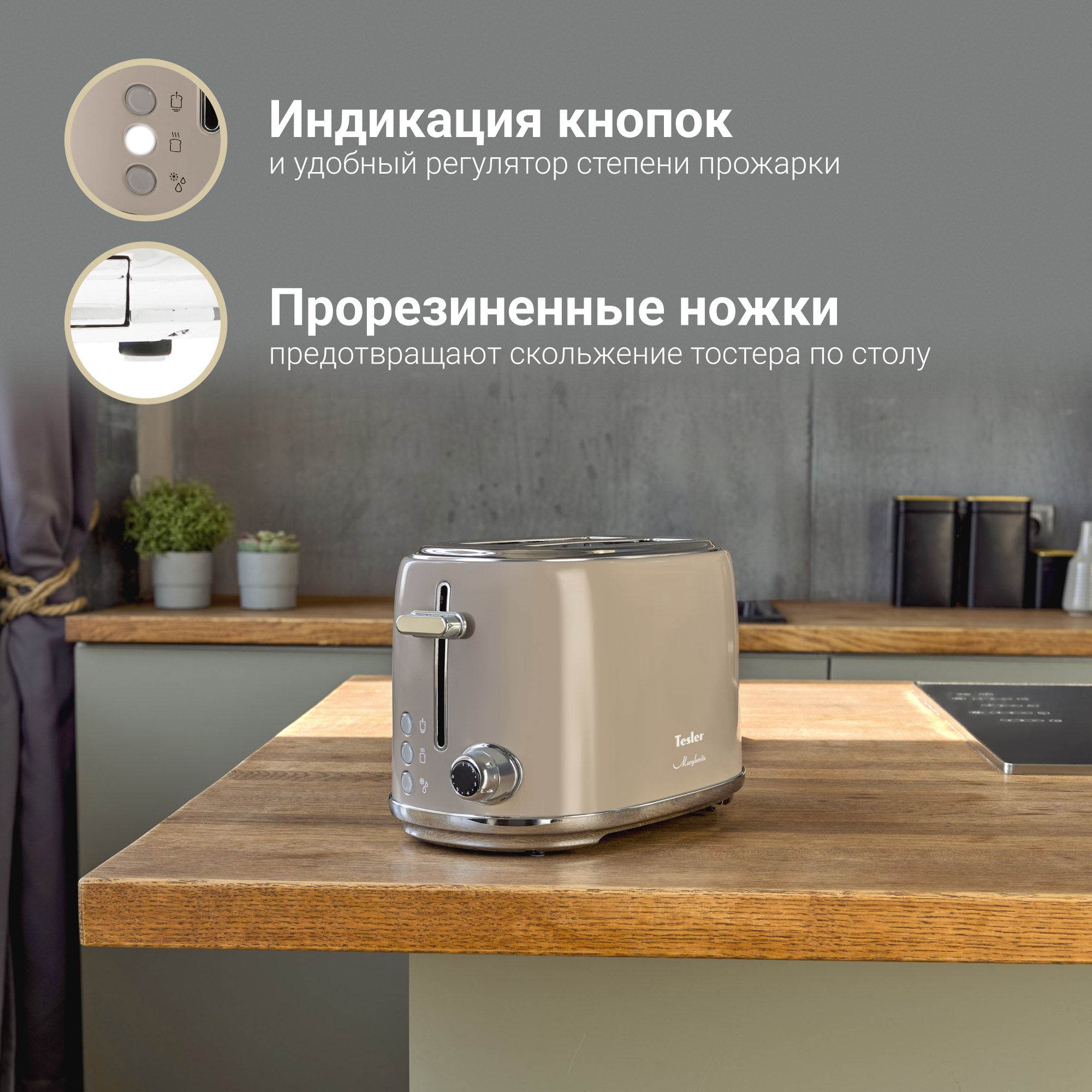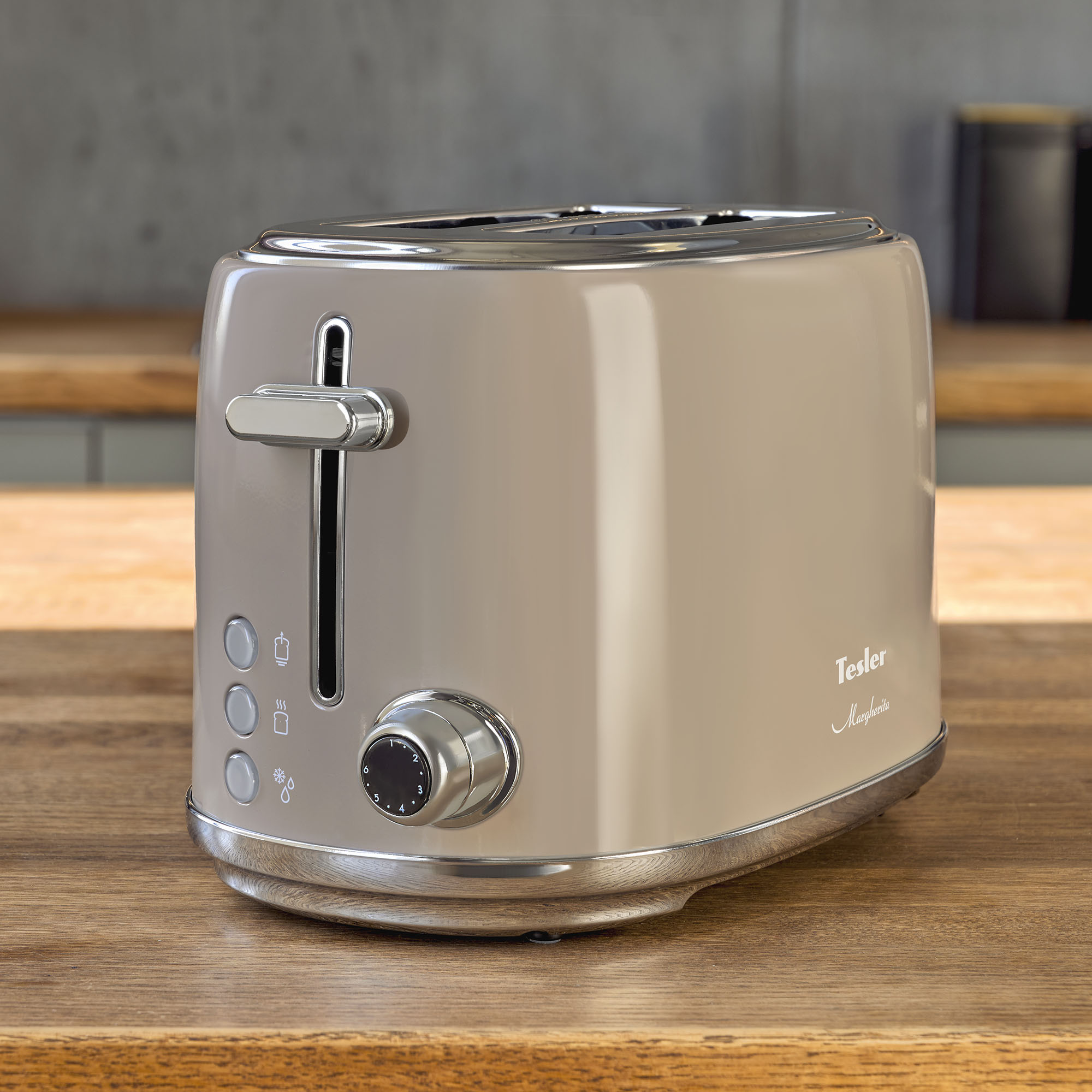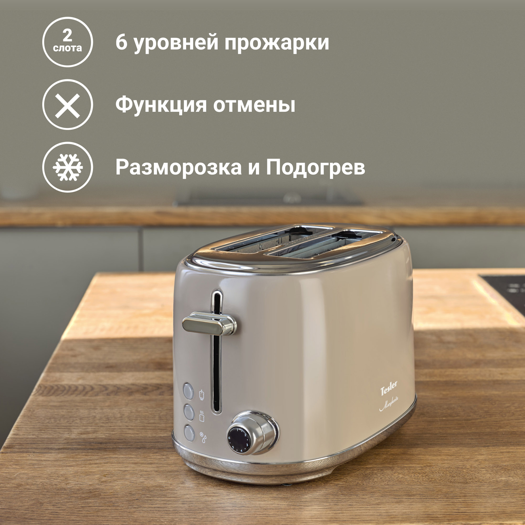 Любите побаловать себя вкусным и полезным завтраком? Тогда обратите внимание на тостер TESLER TT-255 из линейки кухонных приборов Margherita. Он оснащен двумя отсеками для хлеба, поэтому процесс приготовления не займет много времени. А автоматическое центрирование хлеба обеспечит его равномерную прожарку.