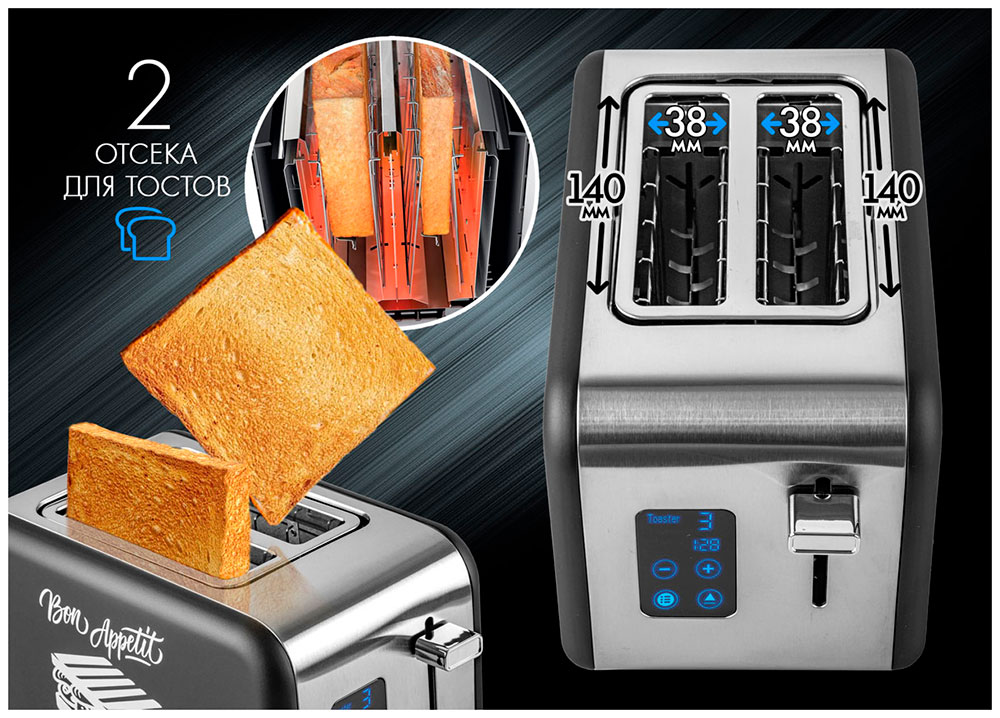 Функция автоматического центрирования тостов Термоизолированный корпус