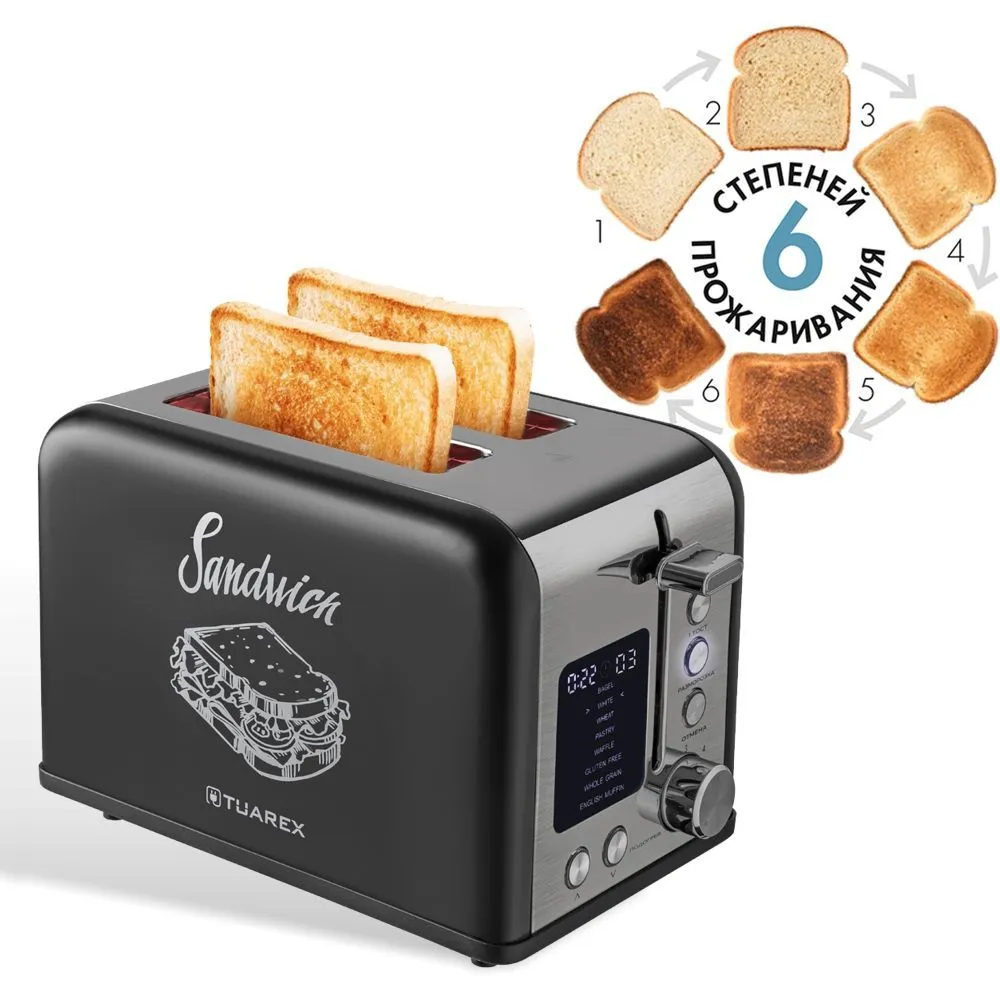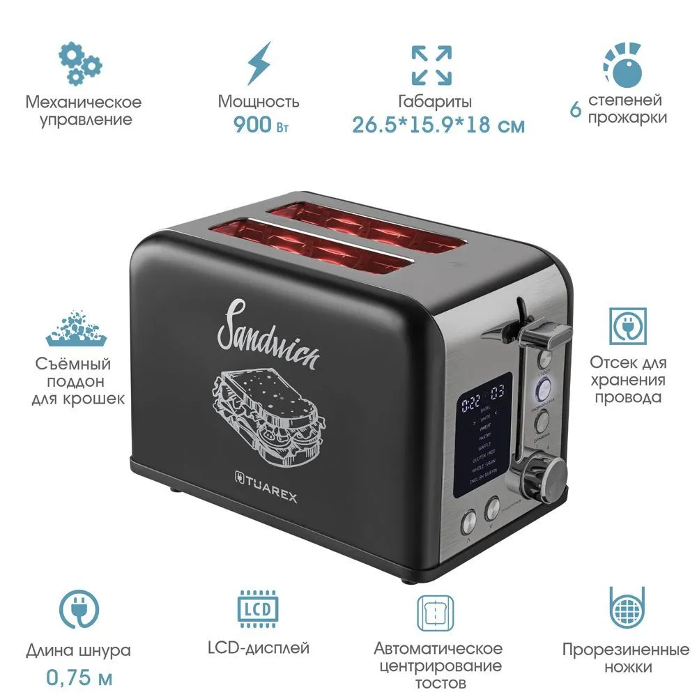 Функциональные особенности: Автоматическое поднятие, Автоматическое центрирование тостов, Кнопка отмены, Регулировка степени обжаривания