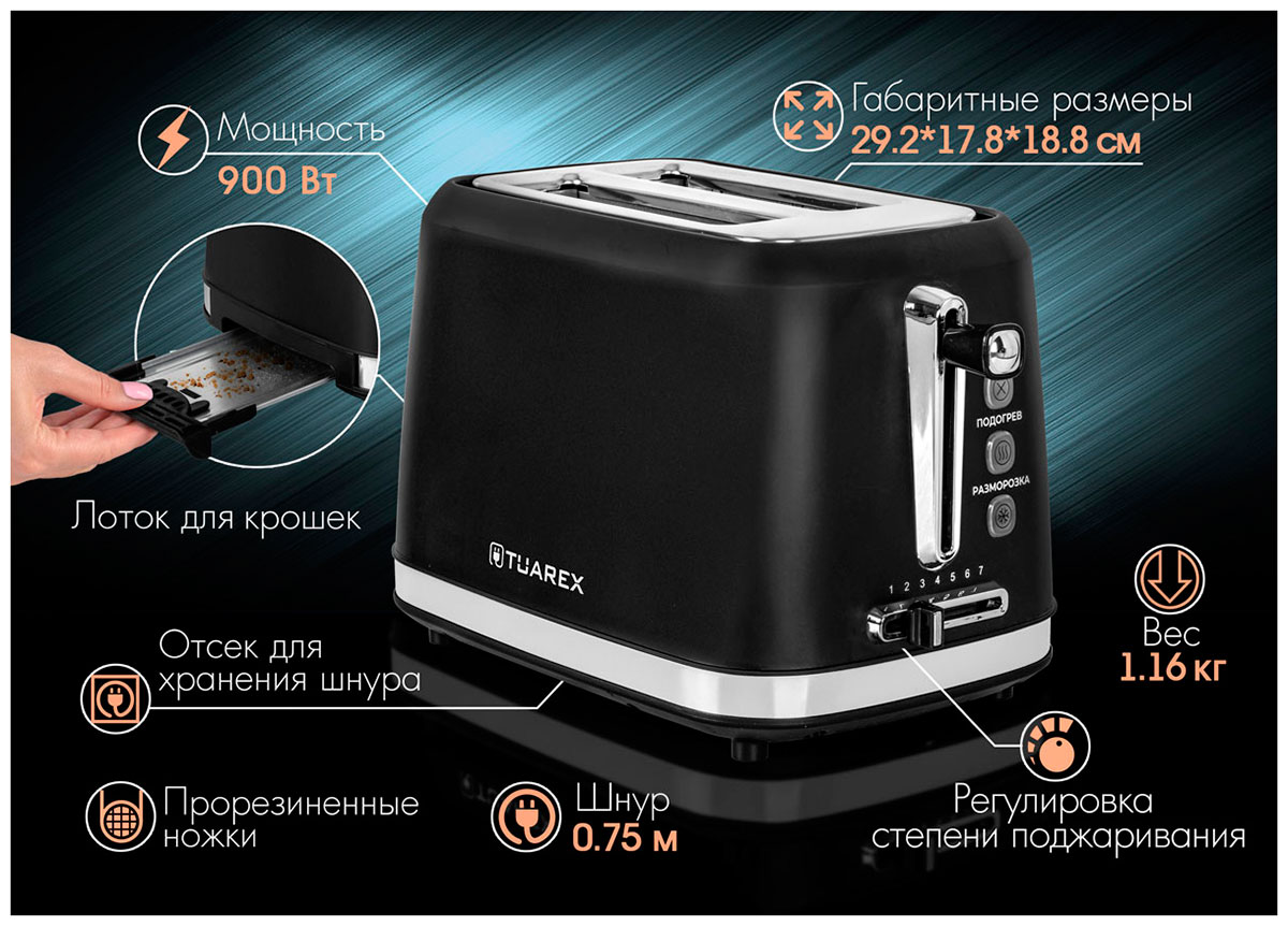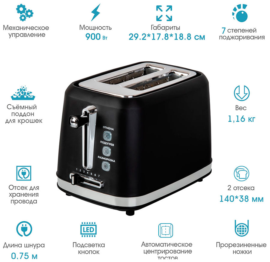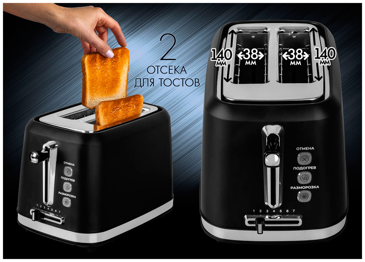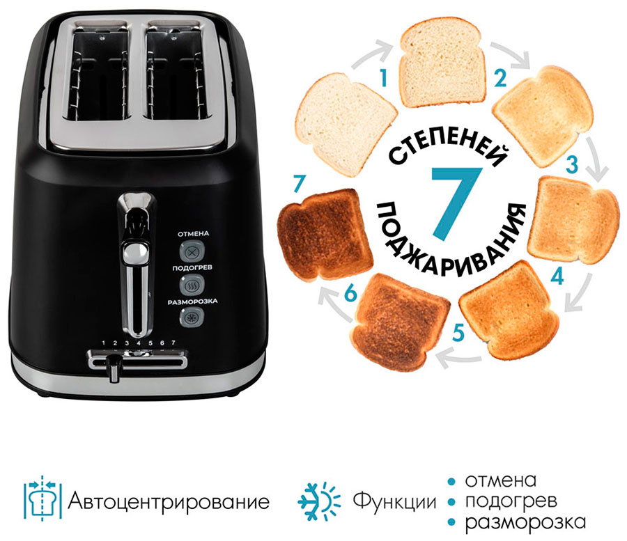 Функция автоматического центрирования тостов Термоизолированный корпус