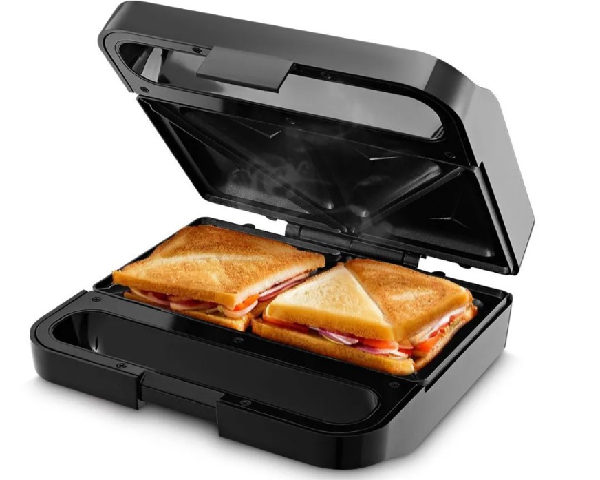 Бутербродница предназначена для приготовления бутербродов под закрытой крышкой. Продукты находятся между двумя нагреваемыми панелями, что обеспечивает их одновременный прогрев с двух сторон. Это сокращает время готовки и не требует переворачивать еду.