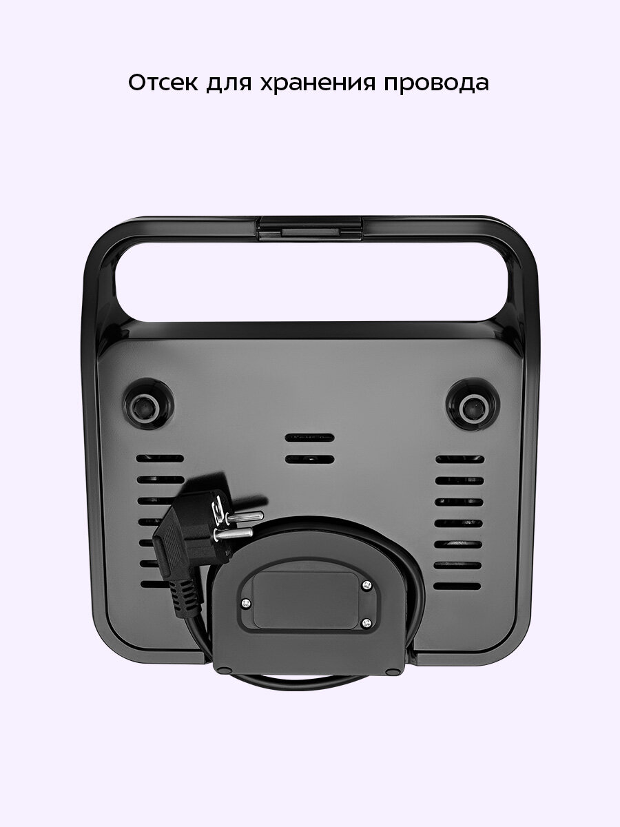 На дне прибора есть отсек для хранения шнура питания, что обеспечивает удобное хранение устройства. Всегда разматывайте шнур при использовании прибора. Корпус бутербродницы в процессе приготовления может сильно нагреваться.