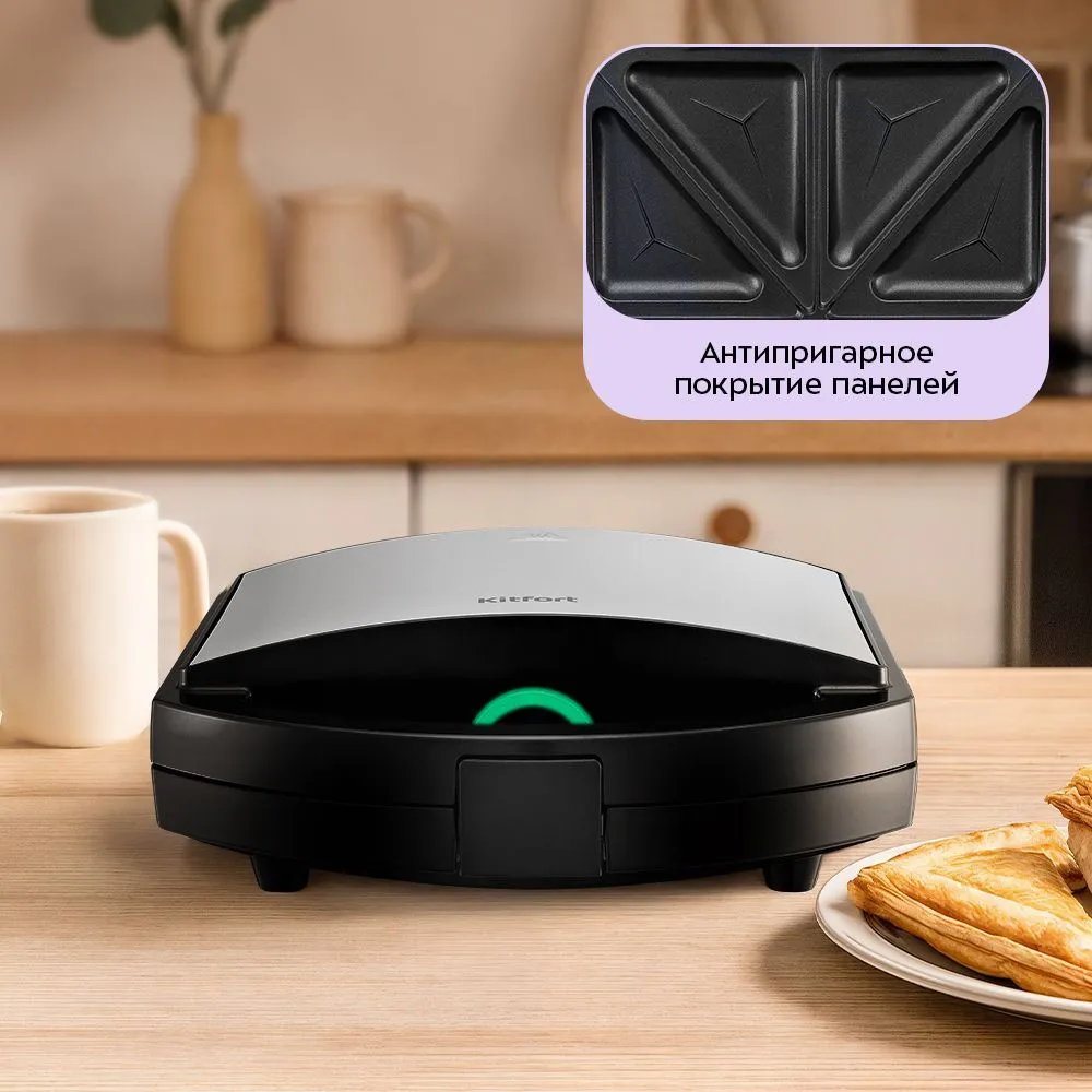 Электрическая бутербродница КТ-4612 поможет приготовить самые разнообразные бутерброды. Можно приготовить не только привычные сэндвичи, но и сладкие бутерброды с разными начинками, драники и многое другое. КТ-4612 рассчитана на 2 порции.