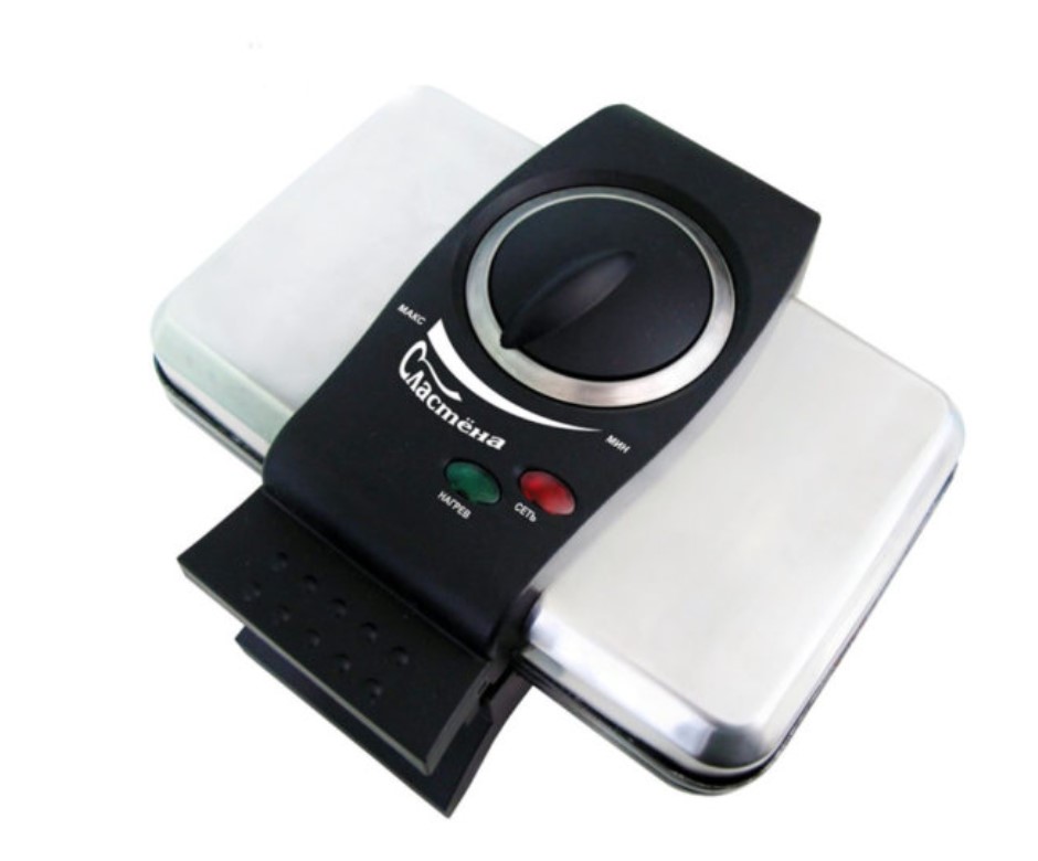 Вафельница Сластена имеет тефлоновое покрытие. Прекрасно подойдет для использования в домашних условиях. Она имеет компактные размеры и прекрасную производительность. Благодаря мощному нагревательному элементу, всего за считанные секунды получается вкусная и хрустящая вафелька. Простой механический регулятор позволяет плавно изменять температуру жарки, а для контроля над работой устройства на верхней части имеется два световых индикатора. Красный индикатор сигнализирует о подключении к сети, а зеленый, о готовности устройства к работе.