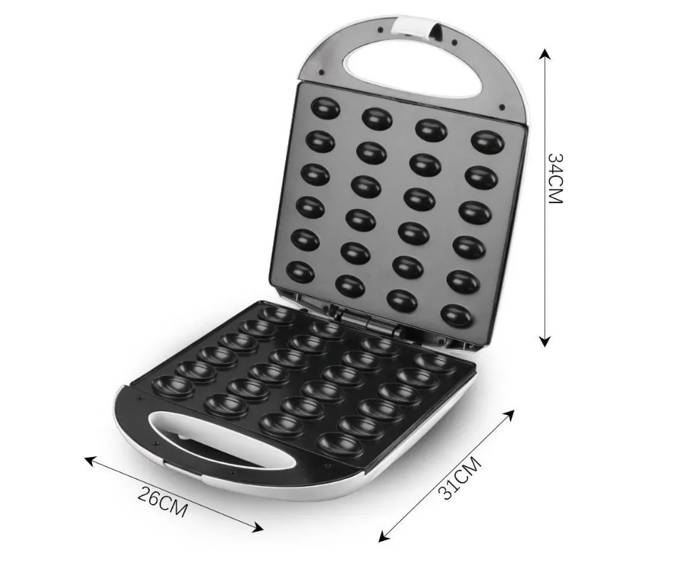 Мощный нагревательный элемент 1400 Вт обеспечит быстрое нагревание двух рабочих поверхностей с антипригарным покрытием. Нагревательная пластина, электрическая орешница изготовлена из алюминиевого сплава с высокой плотностью и хорошей адгезией. На крышке имеются световые индикаторы питания и готовности к работе, что облегчает контролирование процесса приготовления. Корпус изготовлен из термостойкого пластика. Безопасная ручка обеспечивает надежный захват, что помогает предотвратить ожоги.