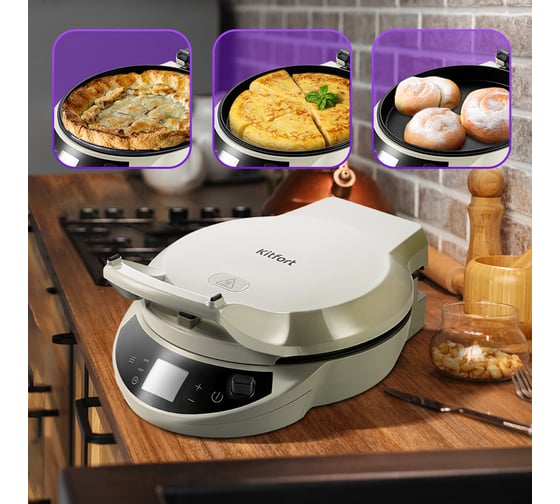 Пиццамейкер «3 в 1» KT-4638 идеально подходит для приготовления пиццы, различных пирогов, датских пончиков, булочек, сырников, горячих бутербродов и запеканок. Также в пиццамейкере можно готовить омлет, запеченные овощи, котлеты, мясо, рыбу и многое другое.