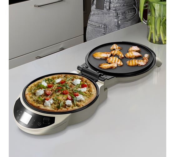 За счет нагревательных элементов в обеих панелях и небольшого пространства между панелями нагрев происходит быстро и равномерно. Поэтому блюда не пригорают снизу или сверху и хорошо пропекаются внутри. Благодаря равномерному нагреву пицца получается сочной со слегка хрустящей корочкой.
