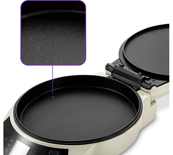 Антипригарное покрытие помогает не прилипать тесту и другим продуктам в процессе приготовления и позволяет готовить с минимальным количеством масла. Также антипригарное покрытие панелей облегчает чистку.