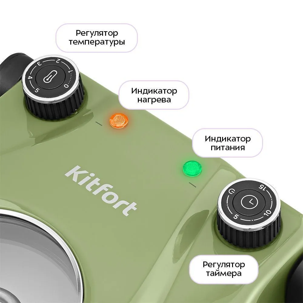 Пиццамейкер КТ-4642 имеет ручки для открытия крышки и окошко для наблюдения за процессом приготовления блюда. Окошко позволяет следить за работой устройства не открывая крышки.