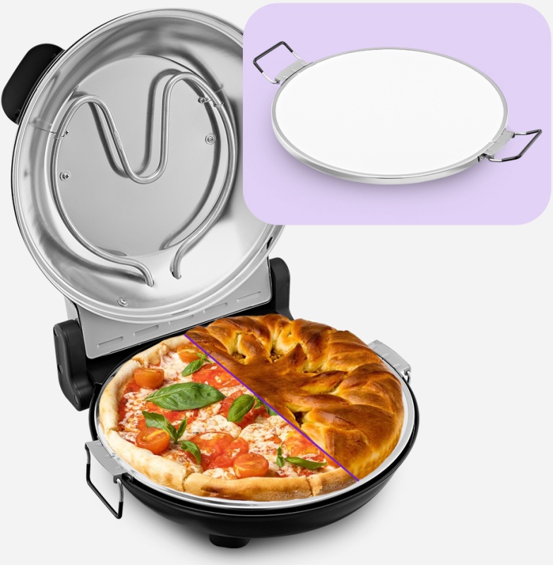 Пекарский камень позволяет имитировать условия подовой печи в пиццамейкере и поможет приготовить питу, осетинские пироги, хачапури и другую выпечку. Он нагревается, затем медленно и равномерно отдает тепло.