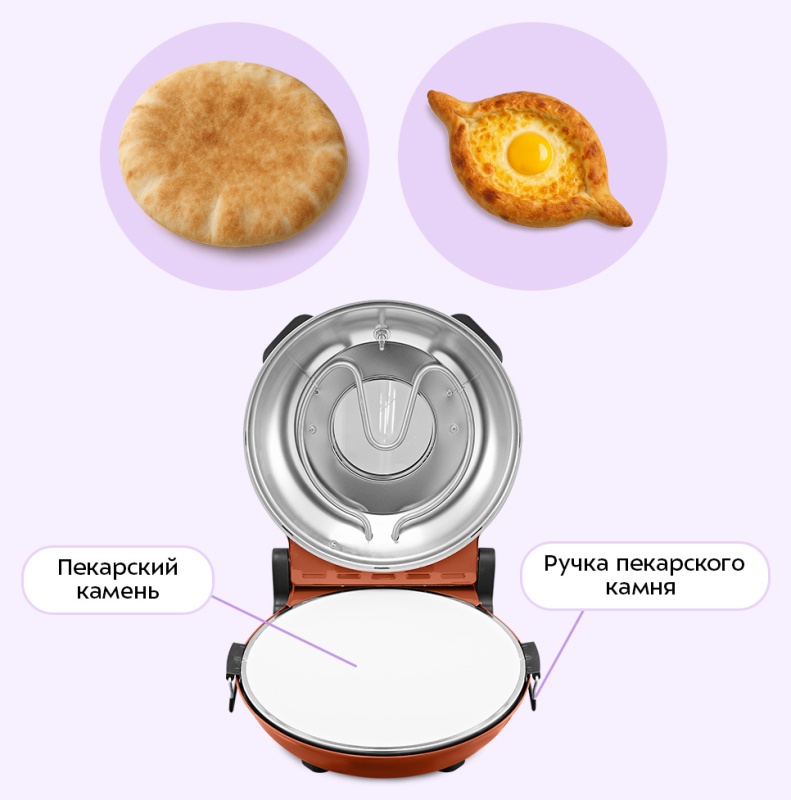 Пекарский камень позволяет имитировать условия подовой печи в пиццамейкере и поможет приготовить питу, осетинские пироги, хачапури и другую выпечку. Он нагревается, затем медленно и равномерно отдает тепло.