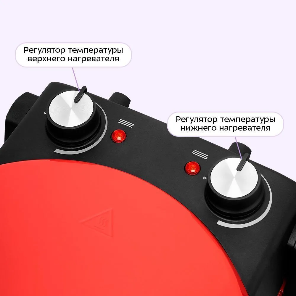 Одна из главных особенностей пиццамейкера – это два нагревателя, которые отдельно контролируются с помощью регуляторов. Это отличный вариант, если вы хотите получить нежное тесто снизу и хрустящую корочку сверху.