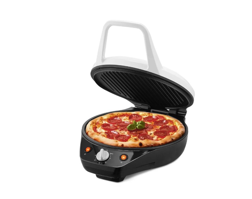 Верхняя панель пиццамейкера ребристая, что позволяет готовить в одностороннем режиме, как на гриле. Перед включением откройте крышку на 180 градусов. Чтобы избежать ожогов, используйте рукавицы или прихватки при выкладывании продуктов на горячие панели.