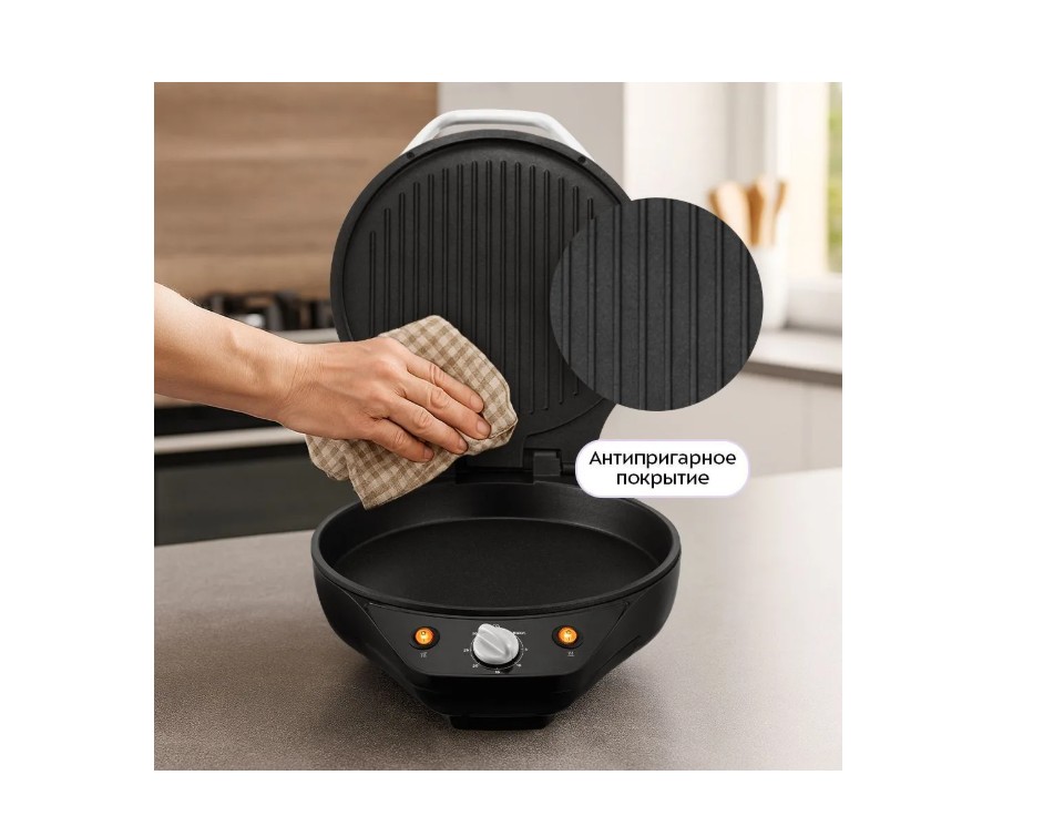 Антипригарное покрытие облегчает приготовление пиццы, предотвращая прилипание продуктов. Это позволяет готовить с минимальным количеством масла, делая блюда более полезными. Такое покрытие также упрощает чистку несъёмных панелей.