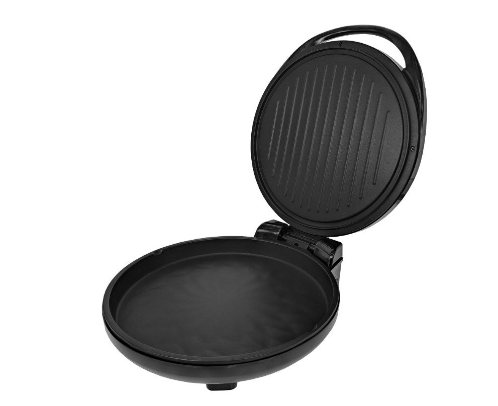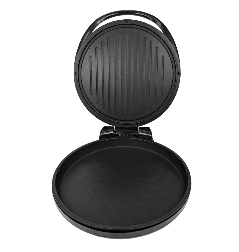 Можно готовить два разных блюда на верхней и нижней панели одновременно или включить только нижнюю панель. Также сковороду можно использовать в закрытом виде, получая равномерное запекание, благодаря двустороннему нагреву и использовать функцию гриль. Рабочие области легко очищаются, достаточно просто протереть их губкой. В комплекте идет деревянная лопатка и переходник для розеток.