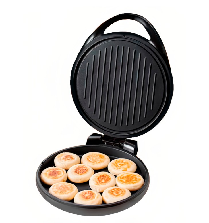 Мощность сковороды 1500 Вт. Максимальная температура нагрева 250°C. Удобное раскрытие на 180°, обе стороны сковороды нагреваются одновременно. Прибор подходит для выпекания пиццы, лепешек, жарки яичницы, бекона, пельменей и приготовления стейка, рыбы, креветок, овощей или шашлычков на гриле.