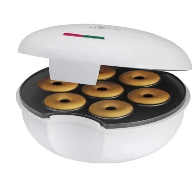 С ультрасовременным и простым в использовании пончикмейкером Clatronic DM 3495 weis Вы сможете за один цикл работы устройства приготовить семь аппетитных и поджаристых пончиков. Прибор отменяет утомительную ручную раскатку теста, вырезание отверстия, характерного для традиционных пончиков и использование огромного количества кипящего масла. Просто залейте жидкое тесто к каждую из формочек для приготовления пончиков и закроете аппарат.