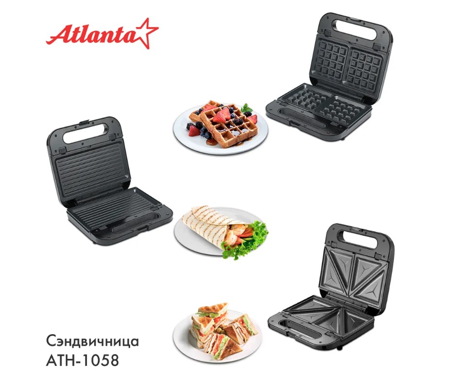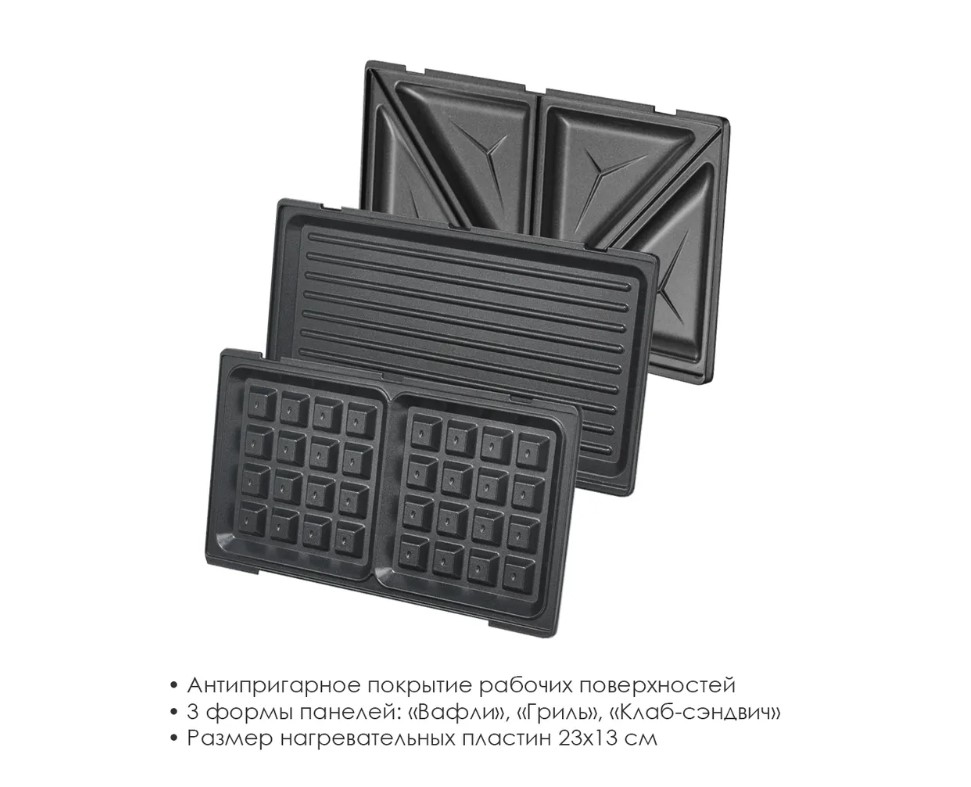 3 вида насадок: сэндвичи, гриль, вафли