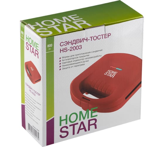 Сэндвич-тостер Homestar hs-2003 красный 800 Вт 105362 предназначен для приготовления сэндвичей.
