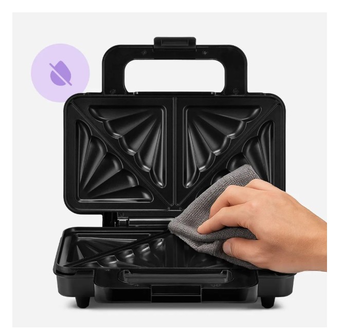 Бутербродница оснащена двумя нагревающимися панелями и позволяет готовить с закрытой крышкой, обеспечивая равномерное обжаривание бутербродов с обеих сторон. Это ускоряет процесс приготовления, исключая переворачивание блюд в процессе готовки.