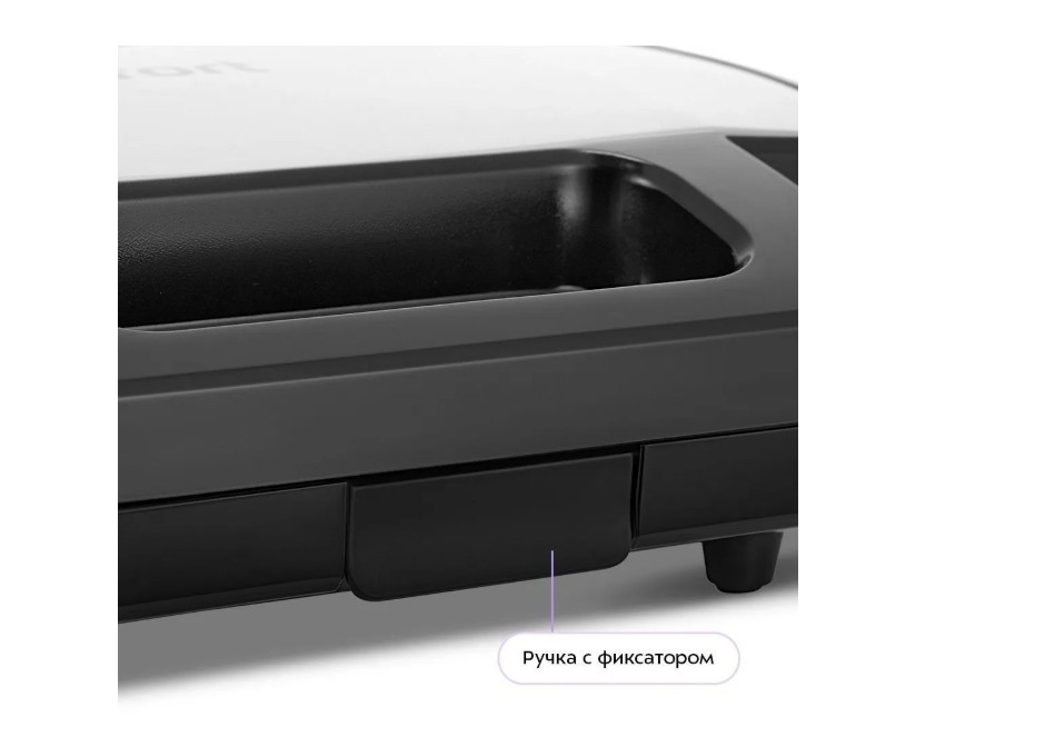 Бутербродница KT-4623 оснащена ручкой с фиксатором, что обеспечивает безопасность во время готовки и хранения. Чтобы избежать травм и ожогов, используйте кухонные рукавицы или прихватки при открывании и закрывании крышки.